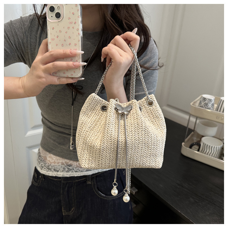 2025 여름 새로운 패션 짠 핸드백 어깨 크로스 바디 버킷 가방 여성 가방 많은 서양식 여성용 가방 지원스토어 가기