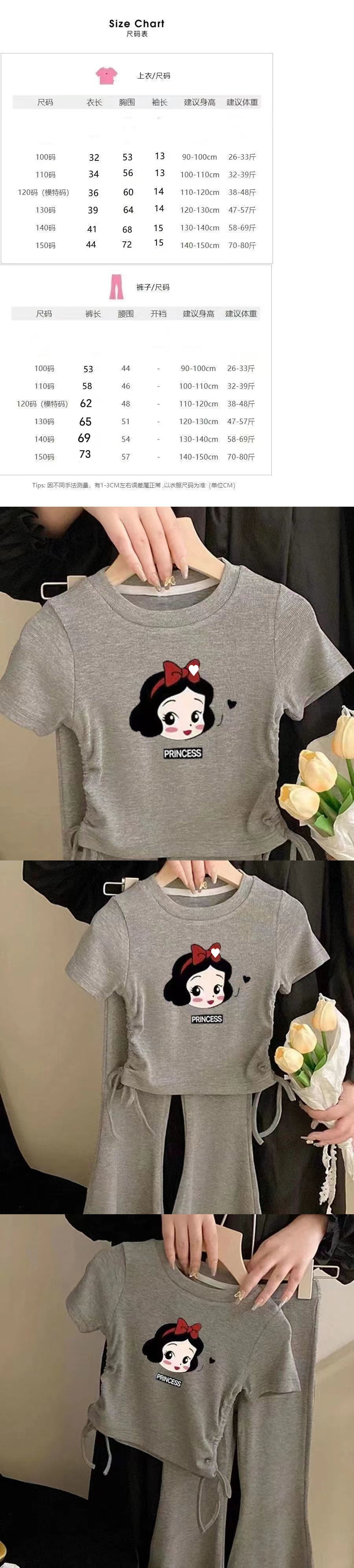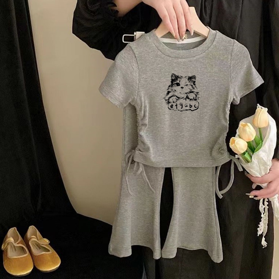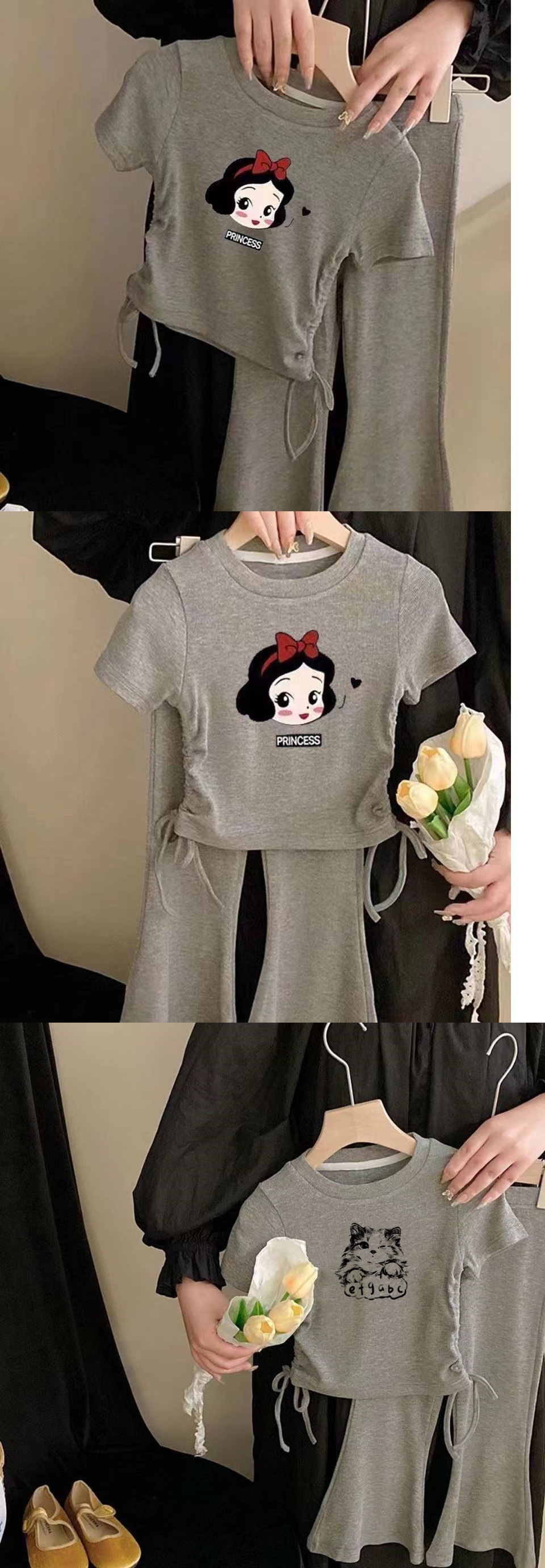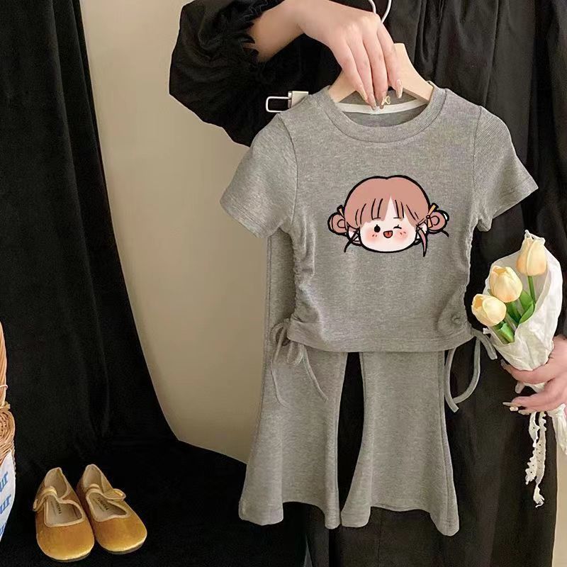 여름 여성 아동복 반팔 소녀 2024 폭발 세트 캐주얼 탑 벨 바지 아기 투피스 의상