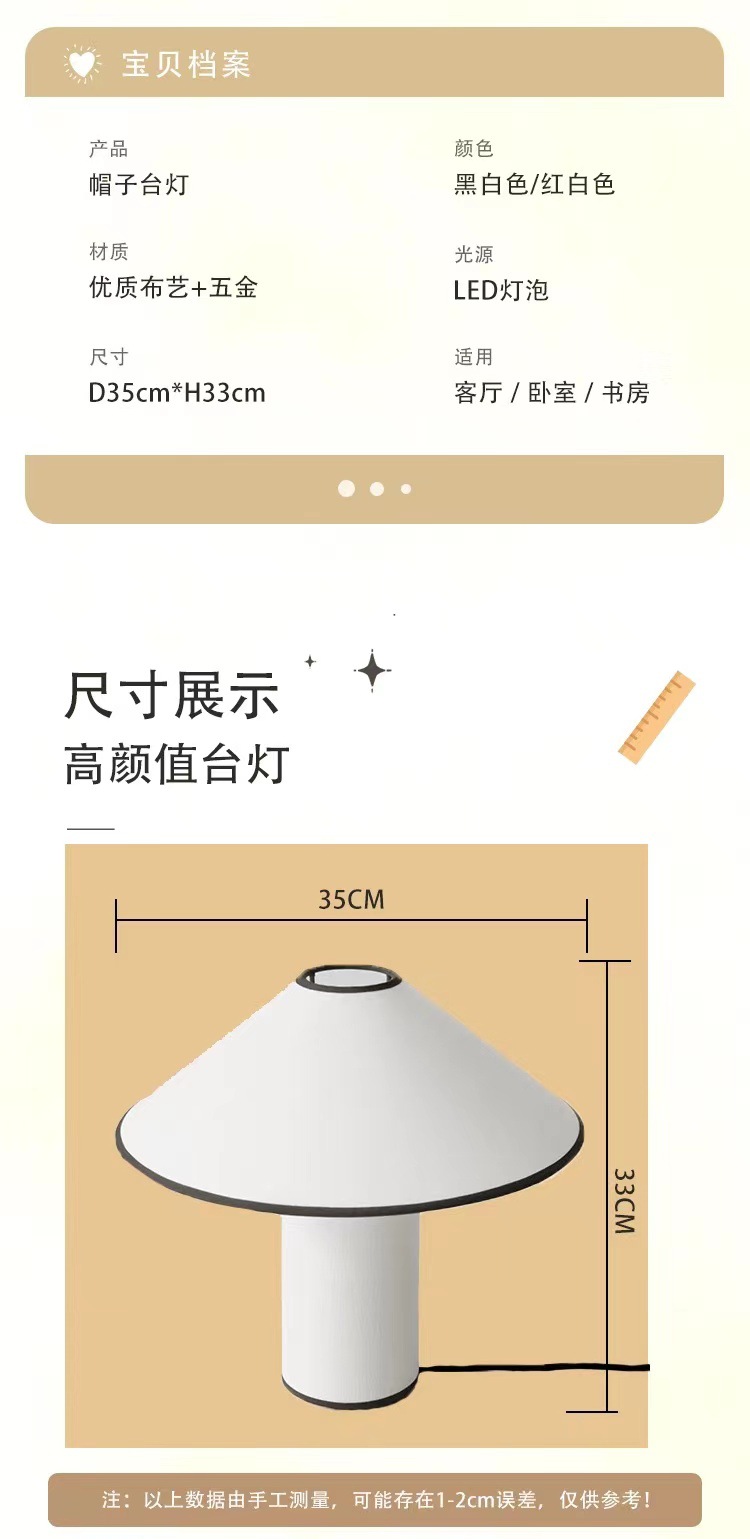 북유럽 덴마크 쿨 스타일 미니멀리스트 모자 테이블 램프 분위기 램프 연구 램프 거실 침실 창조적 인 디자이너 장식