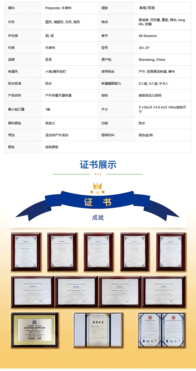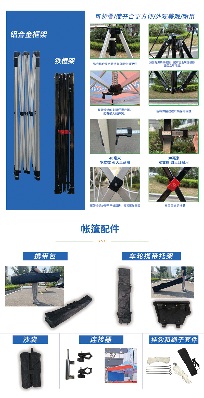 • 40mm 알루미늄 합금 프레임(3* 3m 텐트에 적용 가능)