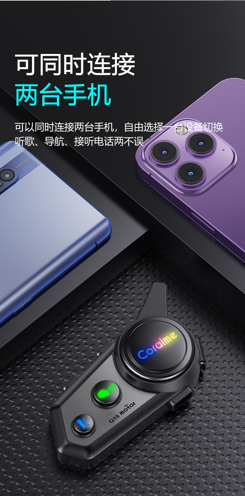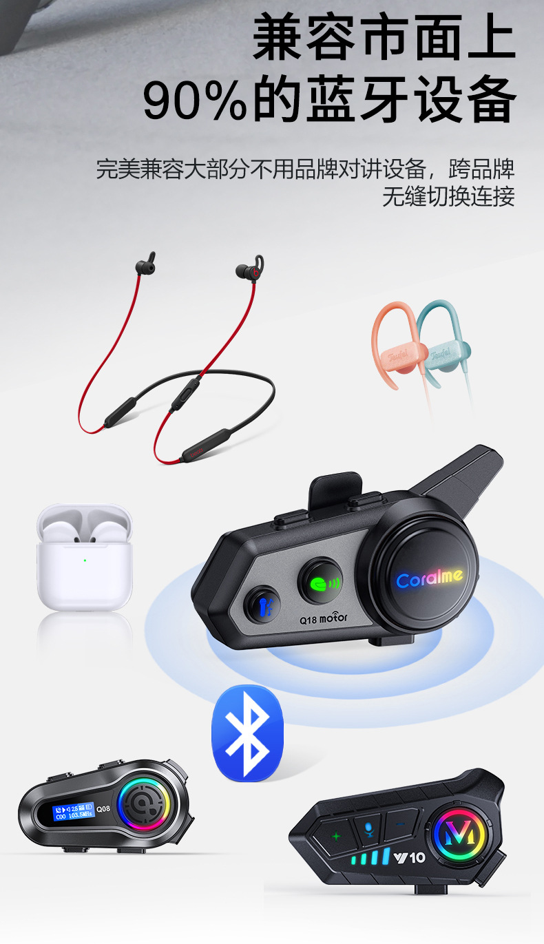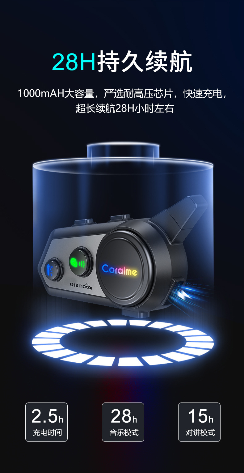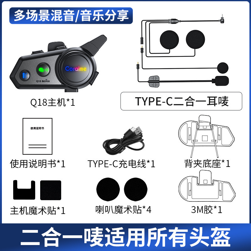 Coralme Q18 인터콤 헬멧 블루투스 헤드셋 믹싱 음악 공유 소음 감소 800m 인터콤 헬멧 헤드셋스토어 가기