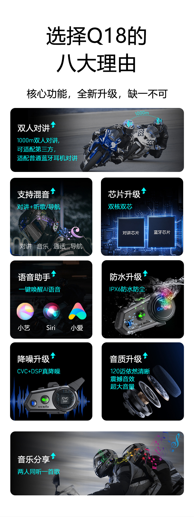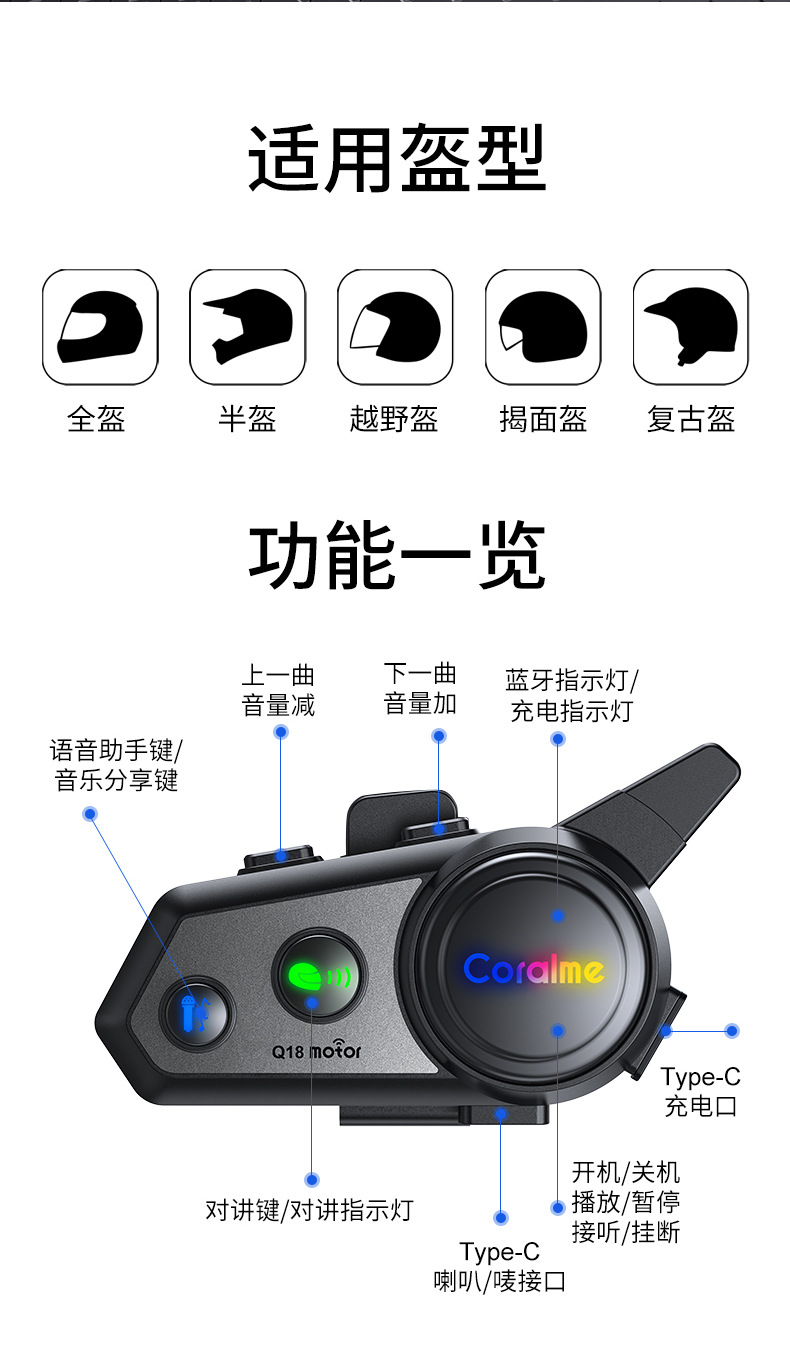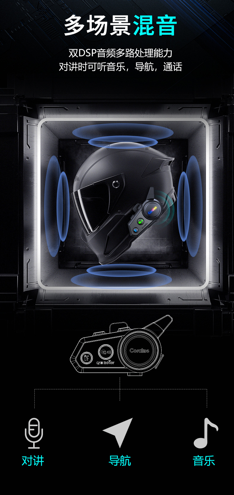 Coralme Q18 인터콤 헬멧 블루투스 헤드셋 믹싱 음악 공유 소음 감소 800m 인터콤 헬멧 헤드셋스토어 가기