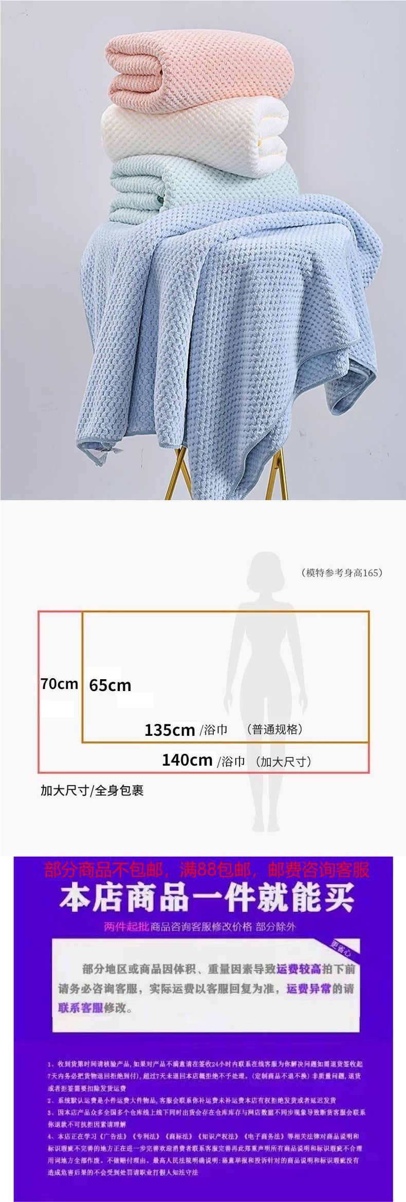 대형 목욕 타월 세트 흡수성 면 남성 및 여성 성인 목욕 대형 가정용 3 피스 세트 무료 배송