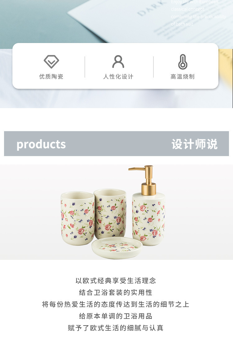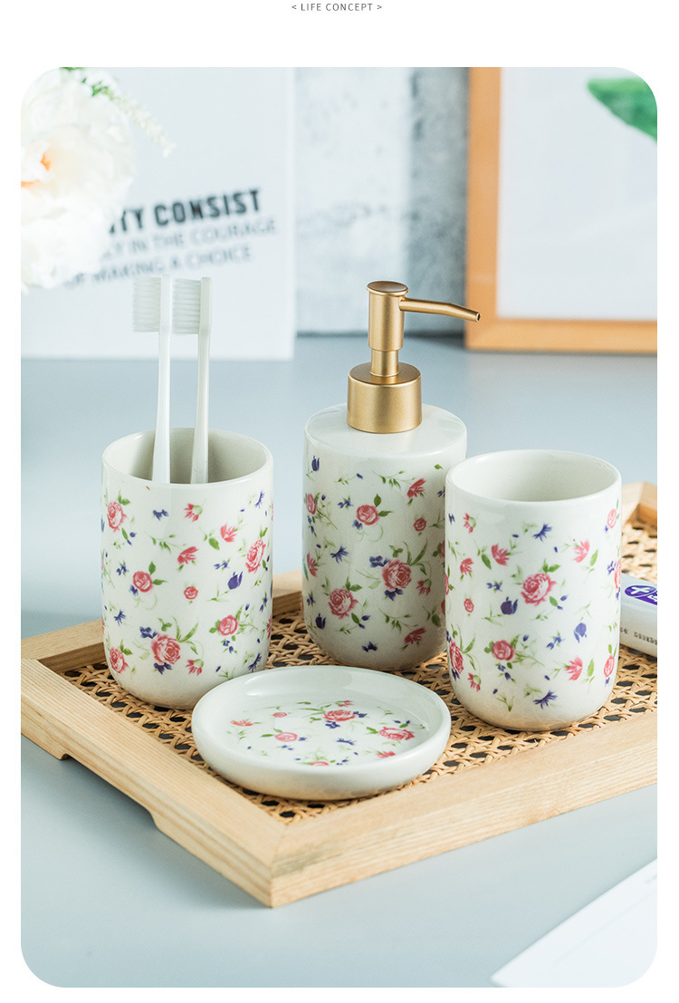 간단한 세라믹 욕실 화장실 세트 북유럽 입장 럭셔리 대리석 패턴 욕실 조리대 장식 욕실 용품 세트스토어 가기