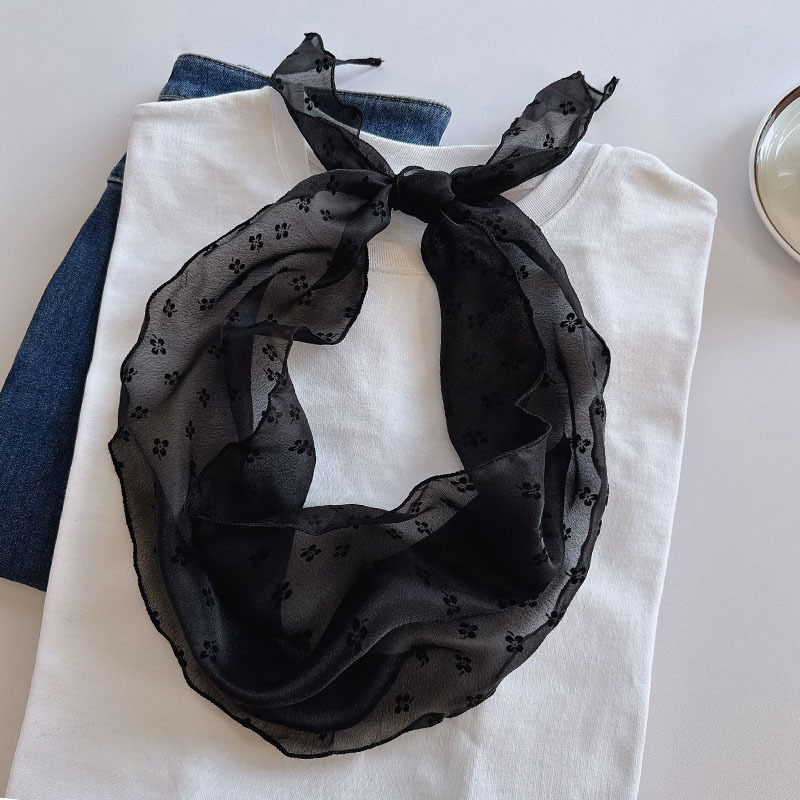 • 플록 플라워 트라이앵글 스카프 블랙
