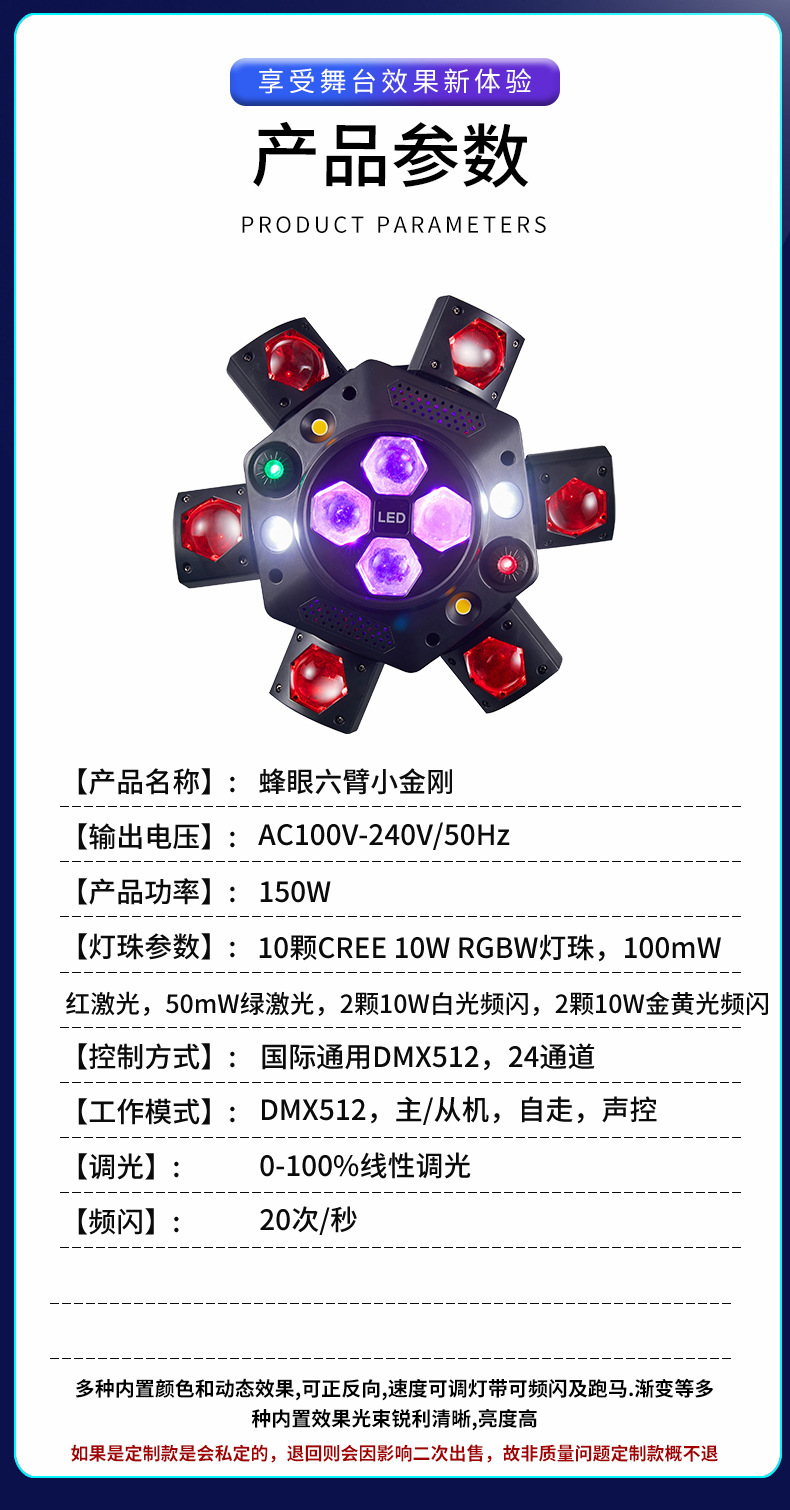 새로운 꿀벌 눈 작은 킹 콩 레이저 빔 라이트 바 클리어 바 KTV 분위기 라이트 바 디디 트램펄린 소용돌이 흔들어 빛