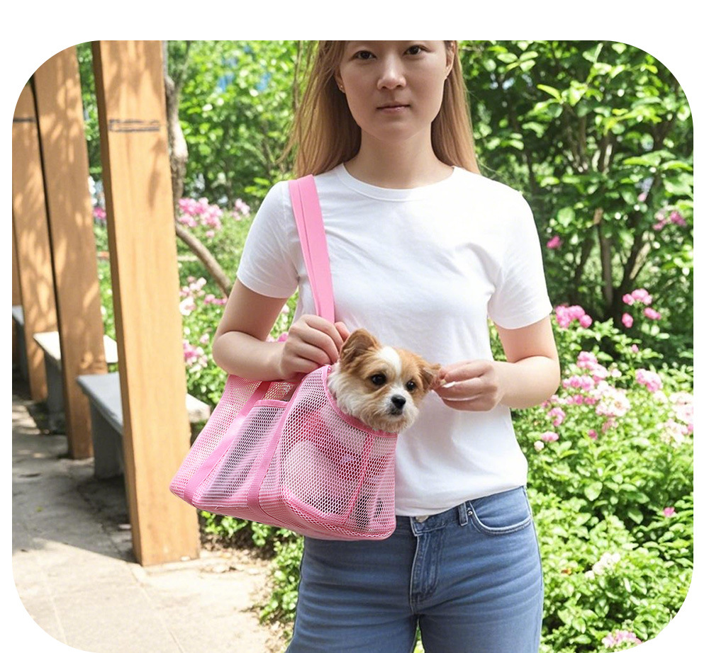 여름 통기성 외출 애완 동물 가방 스몰 사이즈 개 외출 가방 핸드백 어깨 가방 메쉬 가방 개 가방