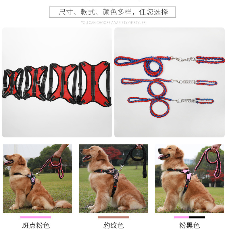 강아지 목줄, 골든 리트리버 목줄, 사모예드 중대형견 하네스, 테디코기 애완견 산책용 로프