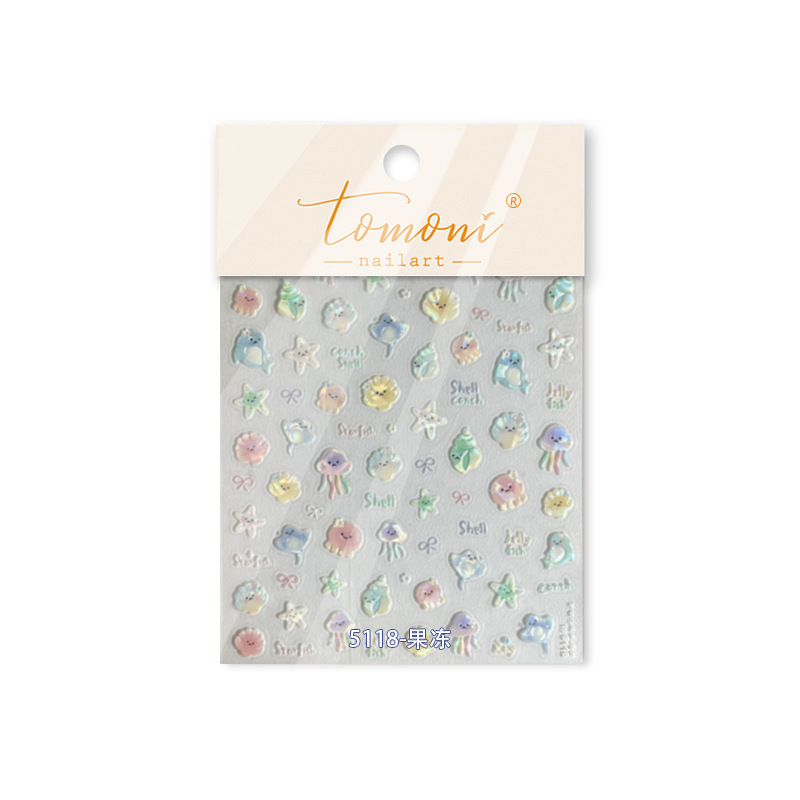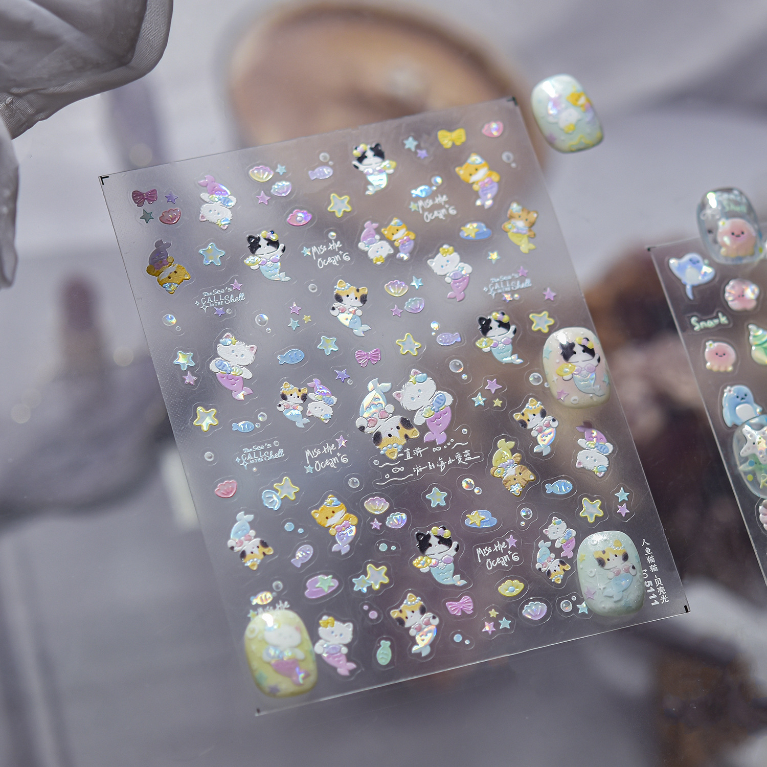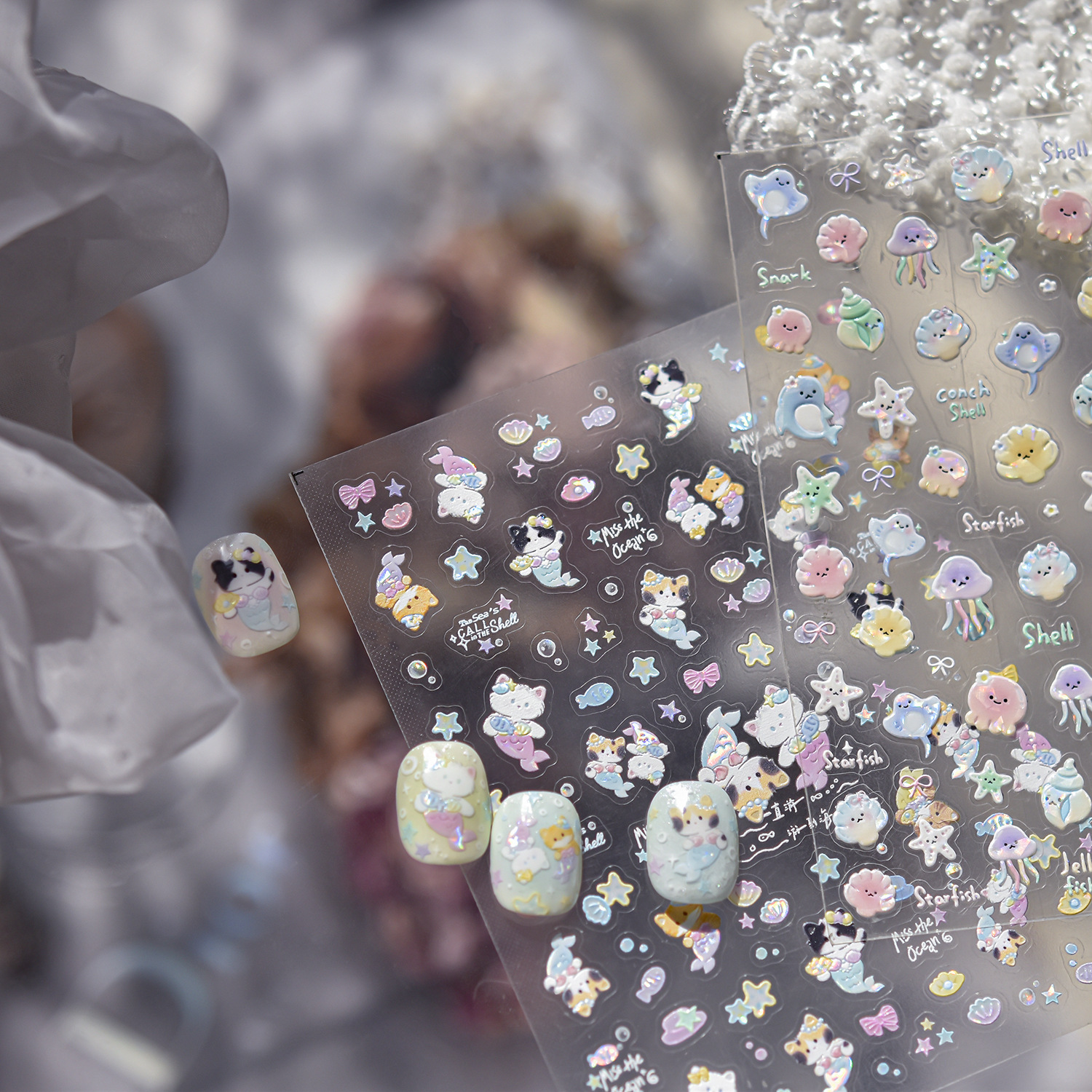 Tomoni Shell 라이트 네일 아트 스티커 폭발 작은 신선한 귀여운 어린이 네일 스티커 인어 고양이 보석 스티커