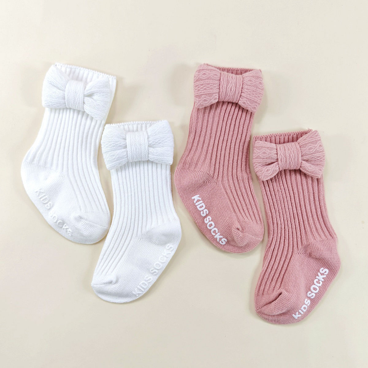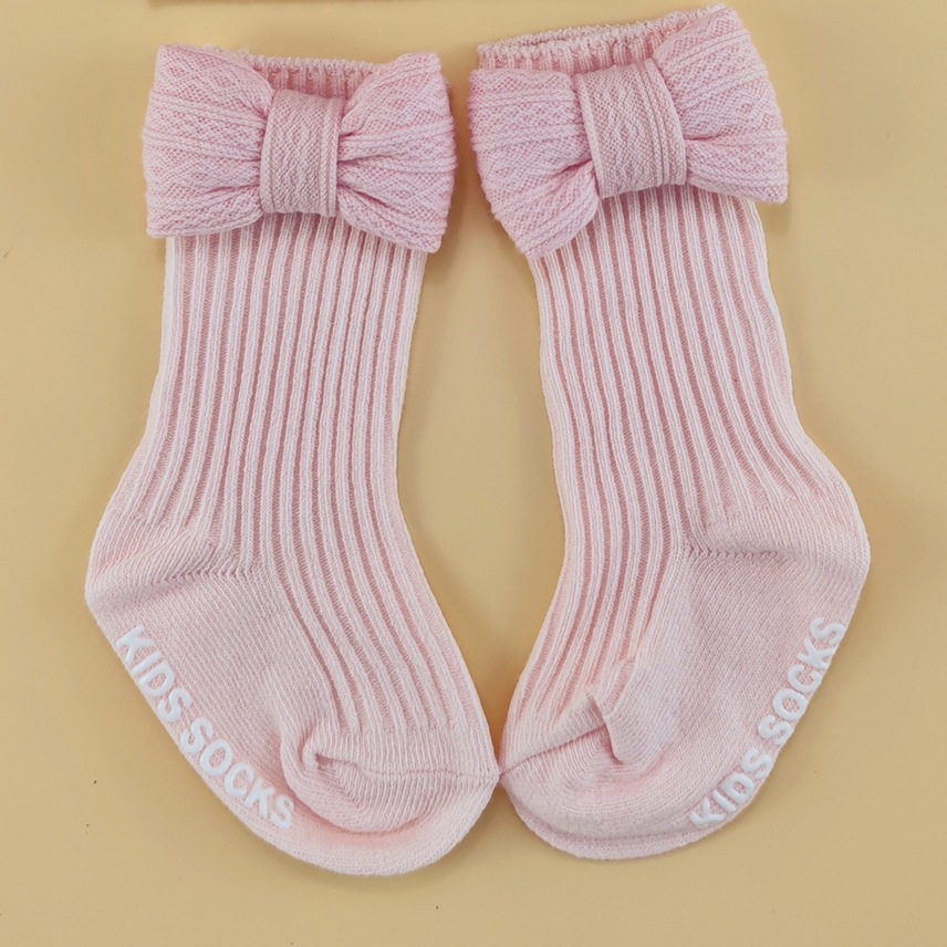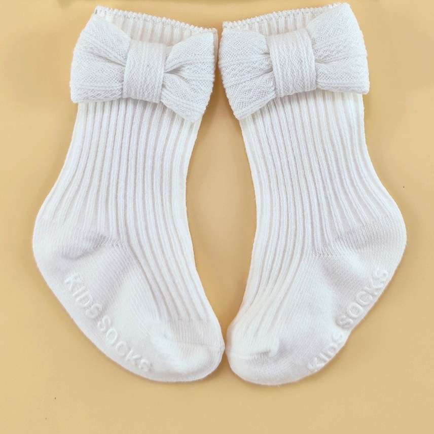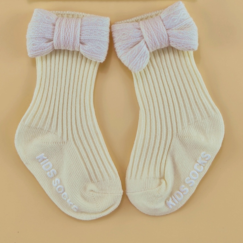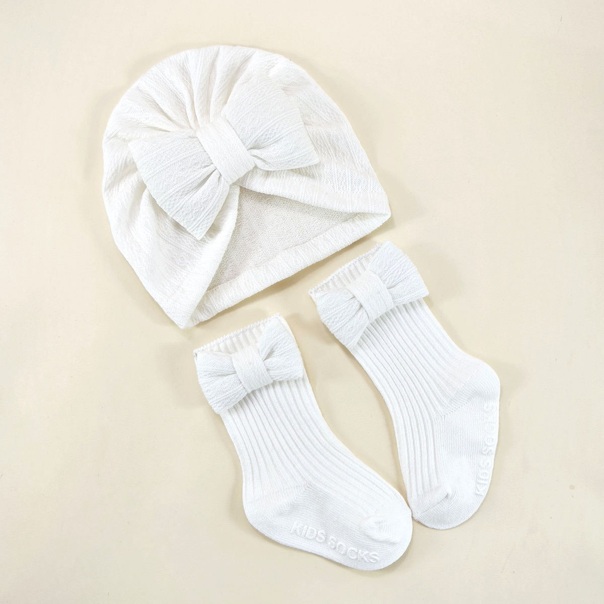 春夏新款婴儿帽子袜子套装新生儿胎帽宝宝可爱蝴蝶结帽纯色婴儿帽