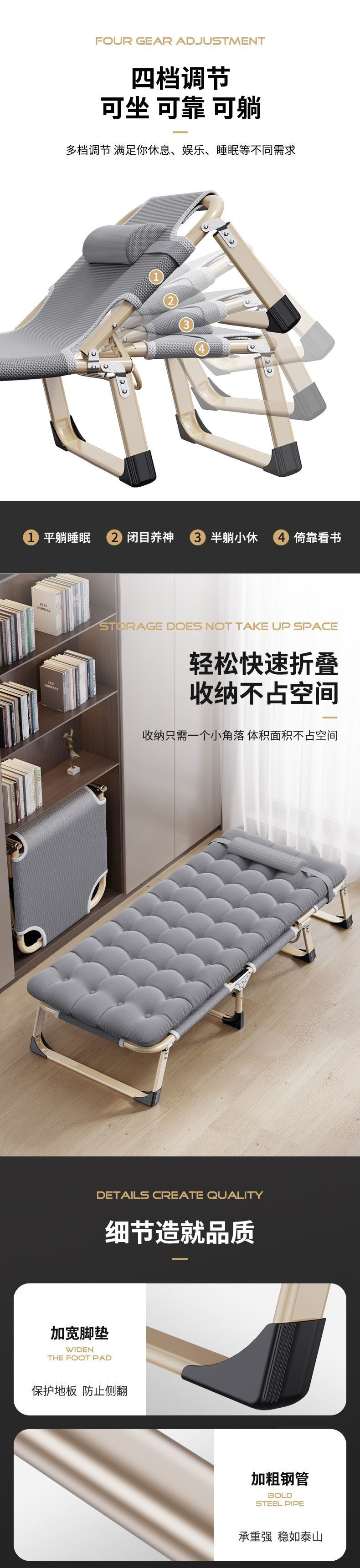 접이식 침대, 1인용 사무실 안락의자, 점심시간, 가정용 휴대용 휴대용 동반자, 간단한 낮잠 캠프 침대스토어 가기