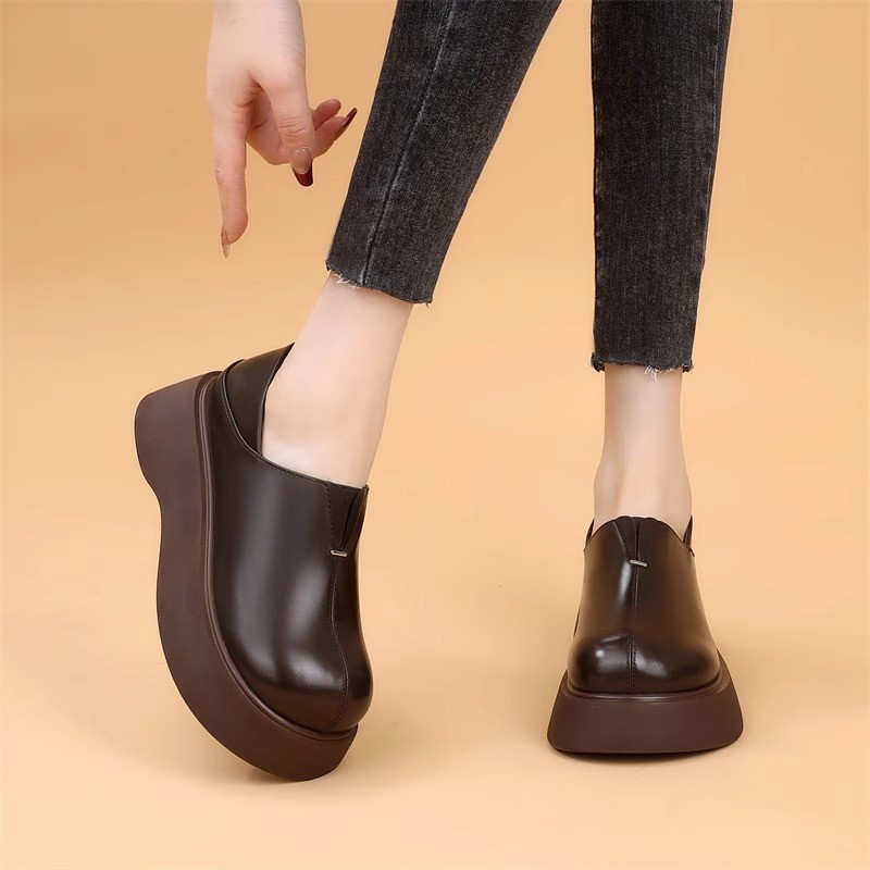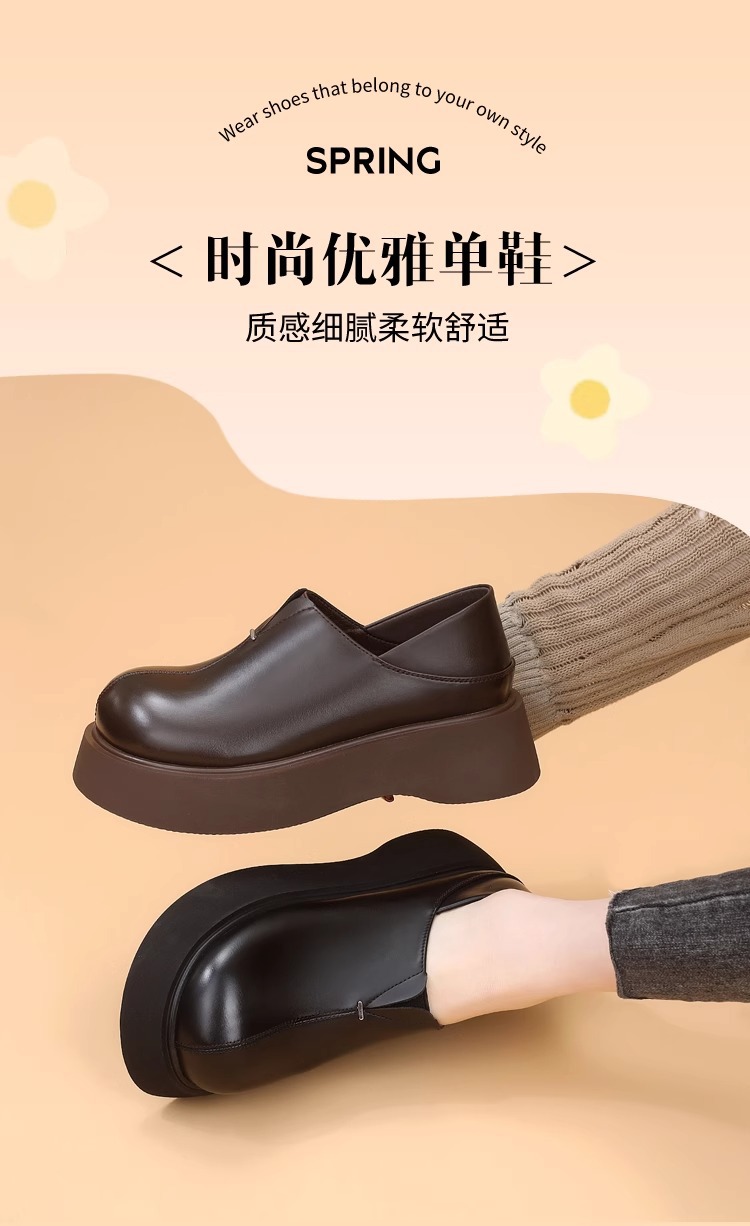 재고 있음] 한국 패션 두꺼운 밑창 로퍼, 다용도 통근 소형 가죽 신발, 2025 여름 신상 부드러운 밑창 여성 신발스토어 가기