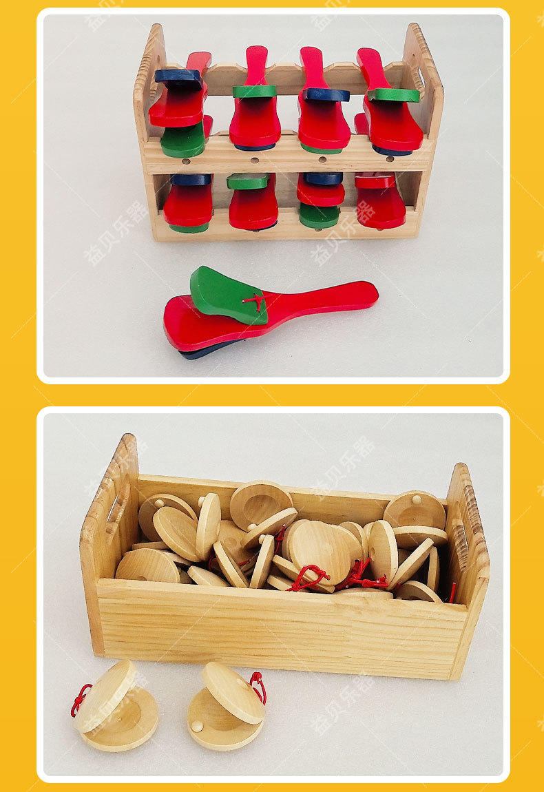 오크/너도밤 나무 휴대용 라운드 댄스 보드 캐스터네츠 유치원 조기 교육 교육 보조 Orff 악기 보관 상자 세트