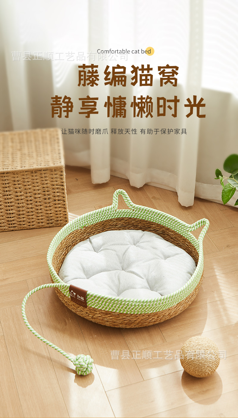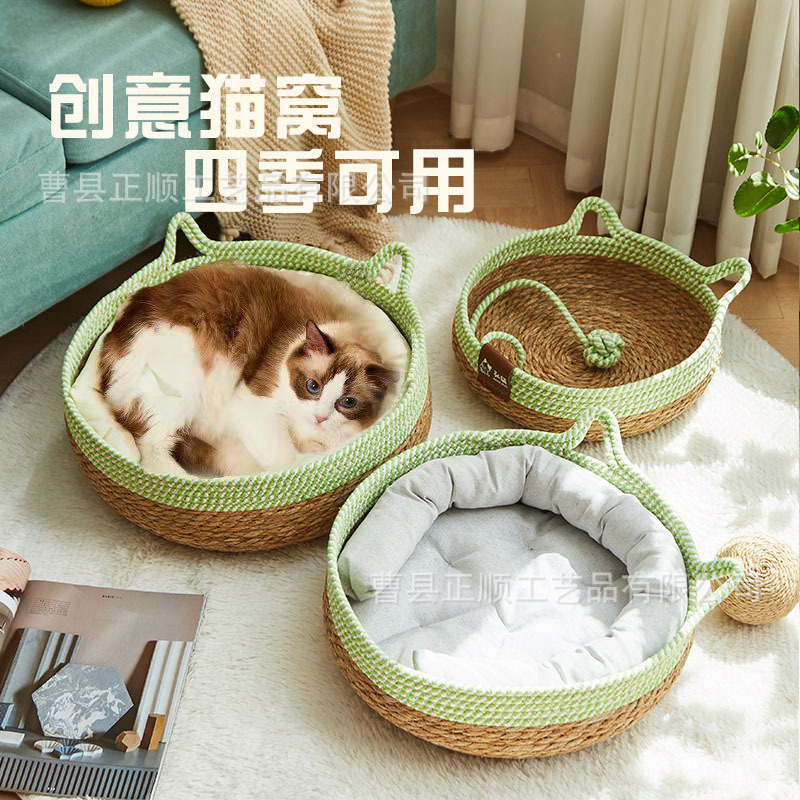 사계절 고양이 둥지, 여름 시원한 둥지, 등나무 바구니, 고양이 스크래치 보드, 올인원 인터넷 연예인 새끼 고양이, 여름 고양이 둥지 재고 있음스토어 가기