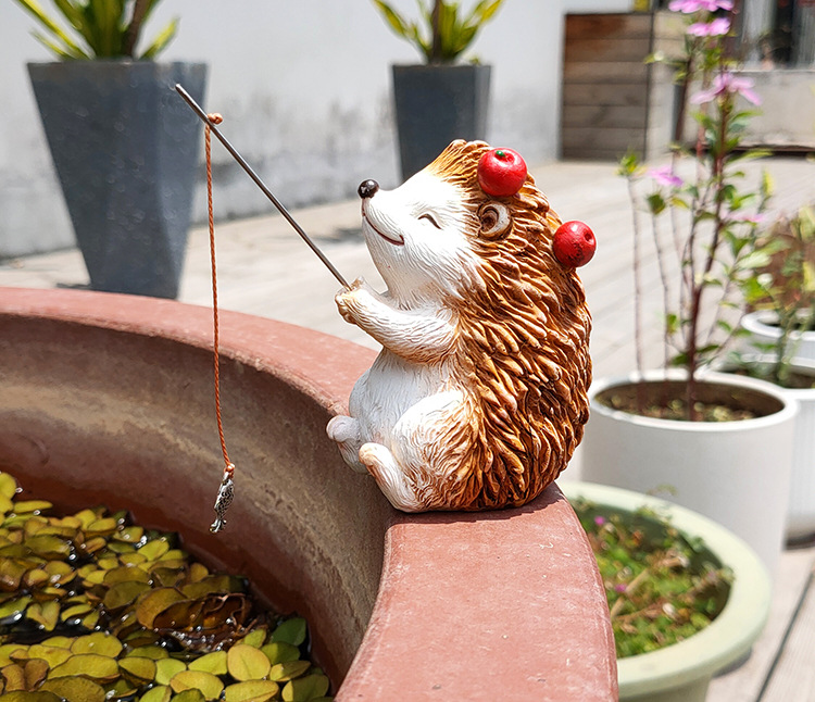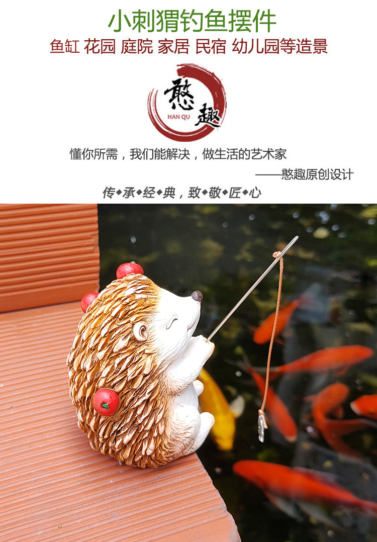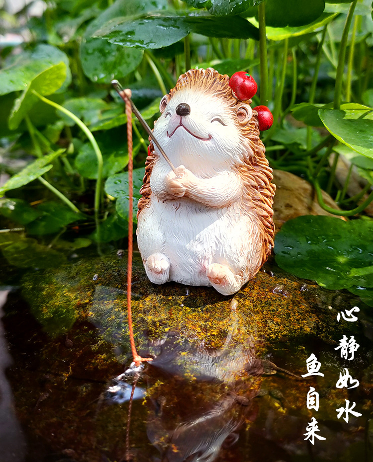 고슴도치 낚시 창조적 인 장식품 귀여운 장식 락 가짜 물 장치 조경 흡수성 돌 물고기 탱크 수족관 귀여운 장식