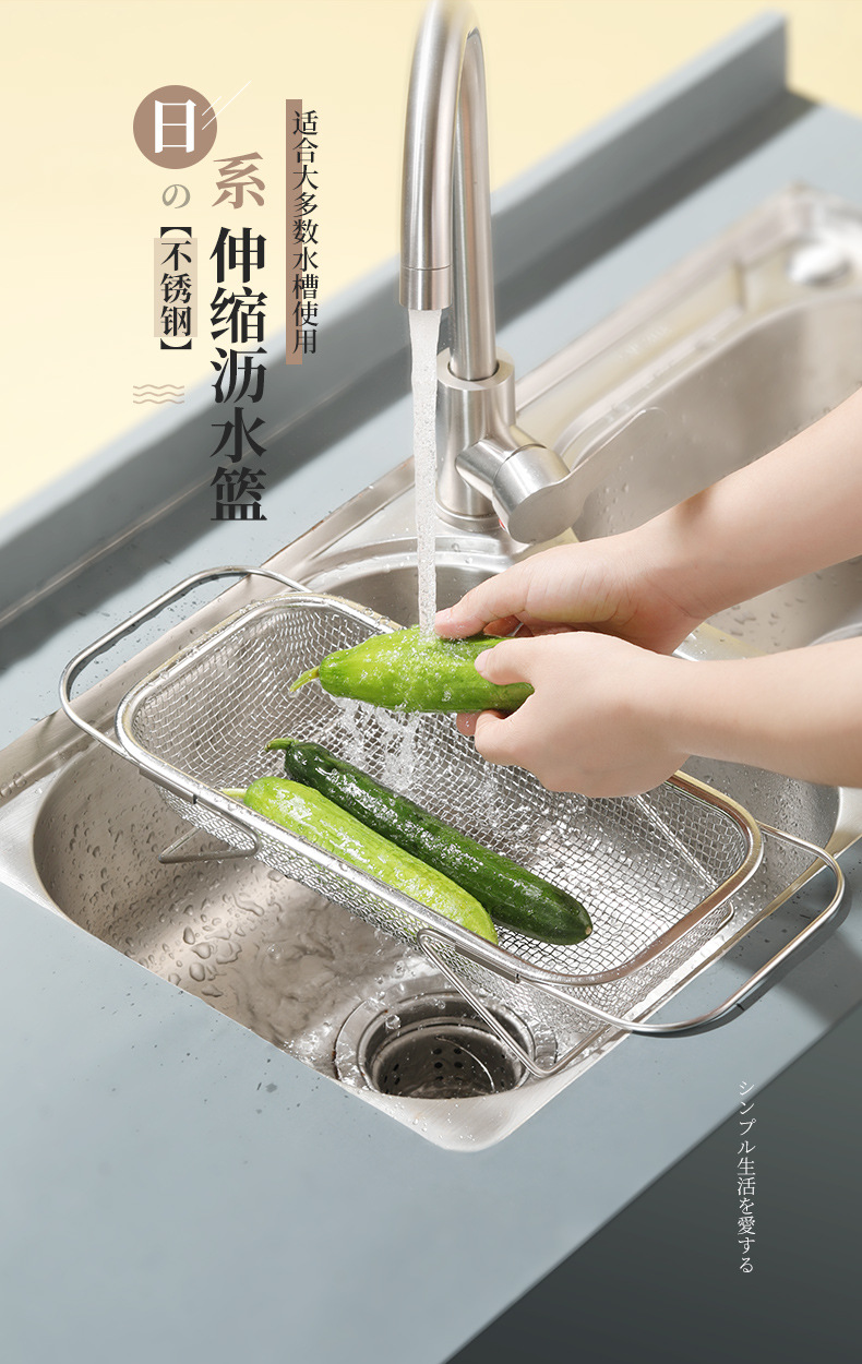 주방 스테인레스 스틸 배수 바구니 개폐식 주방 식기 세척대 대형 가정용 싱크대 배수 랙 사각형스토어 가기