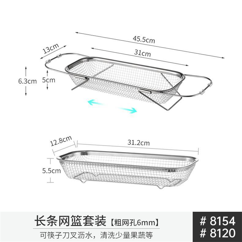주방 스테인레스 스틸 배수 바구니 개폐식 주방 식기 세척대 대형 가정용 싱크대 배수 랙 사각형