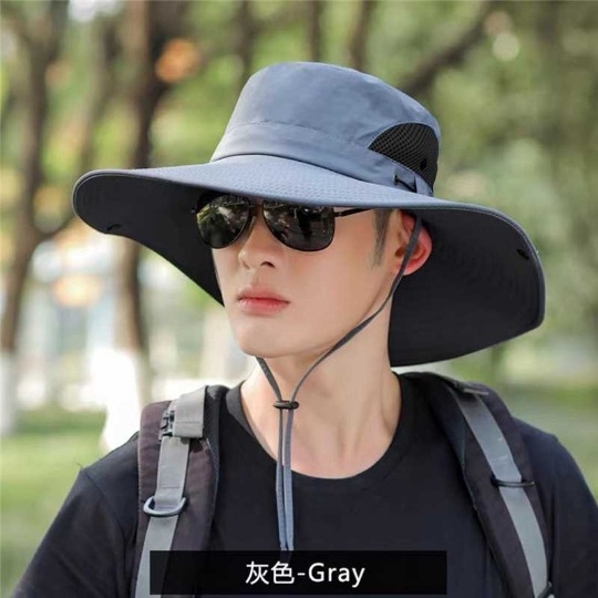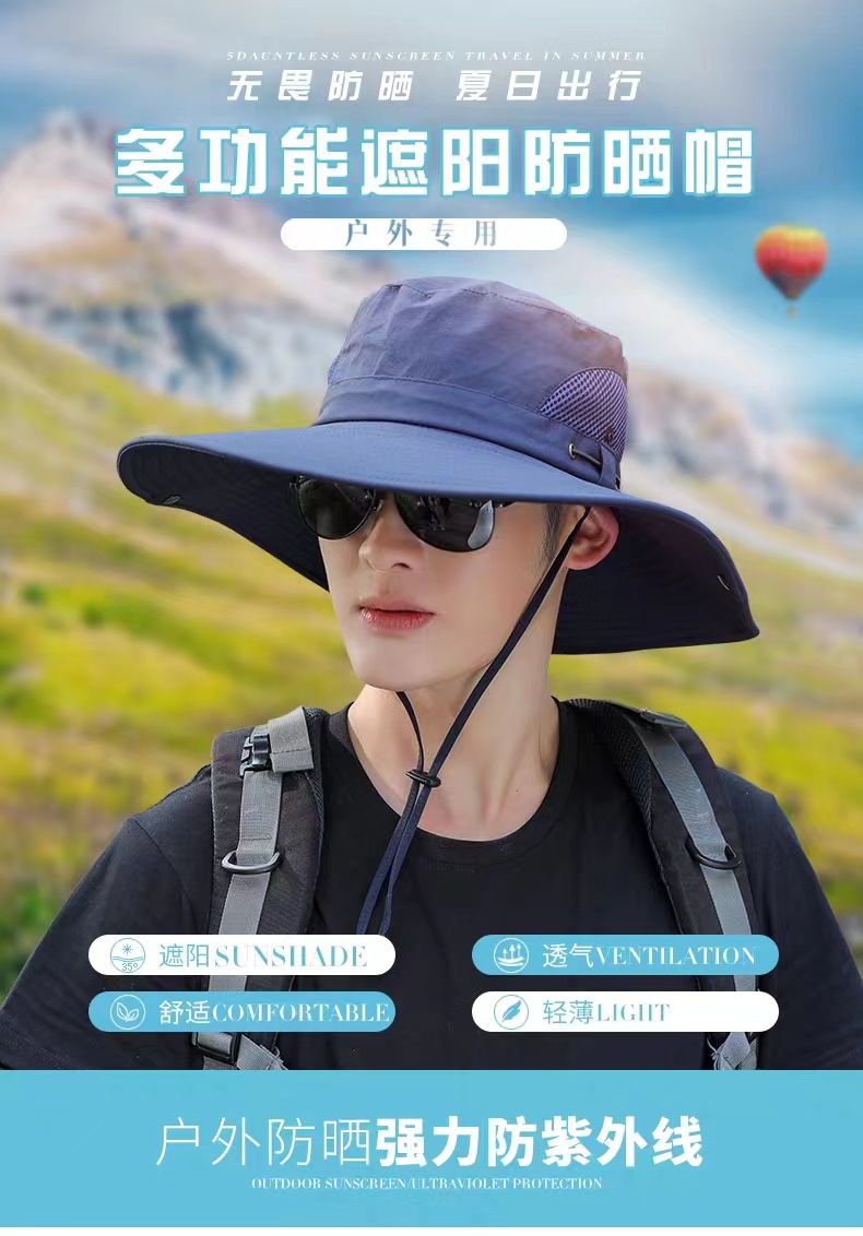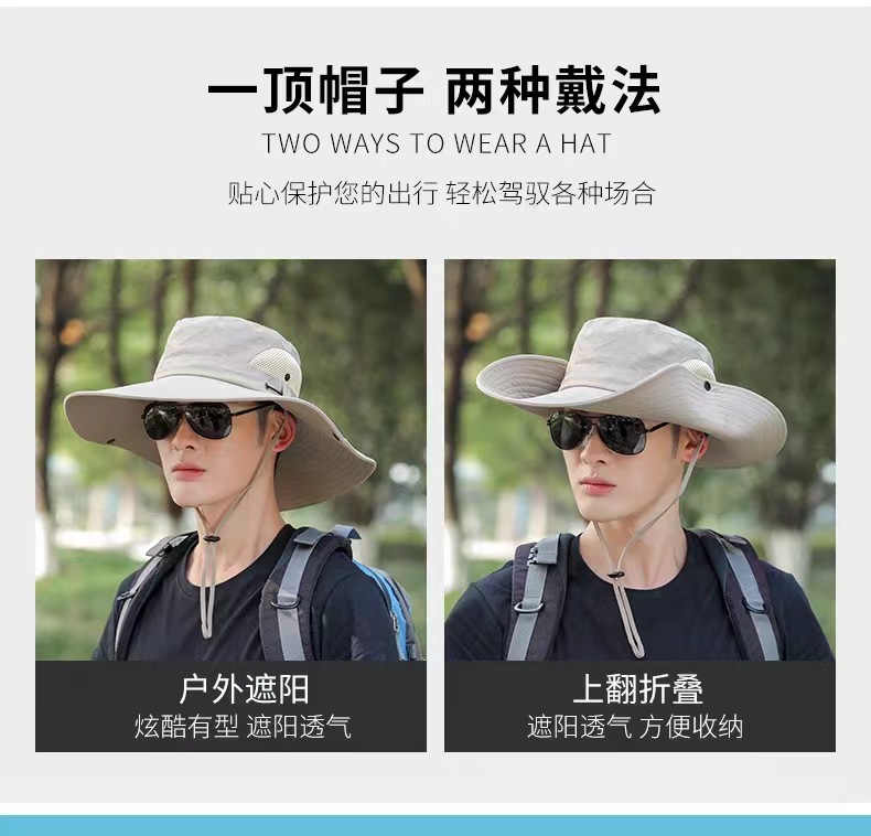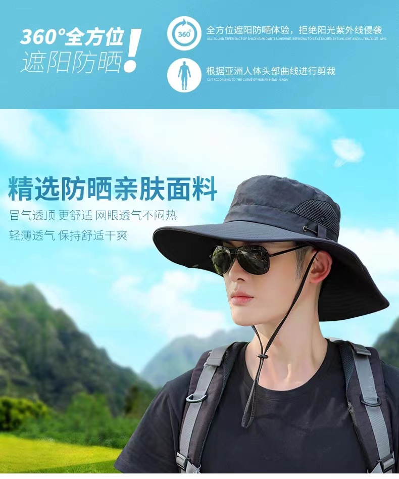渔夫帽男夏季防紫外线户外出游遮阳帽子钓鱼遮脸防晒帽大檐太阳帽