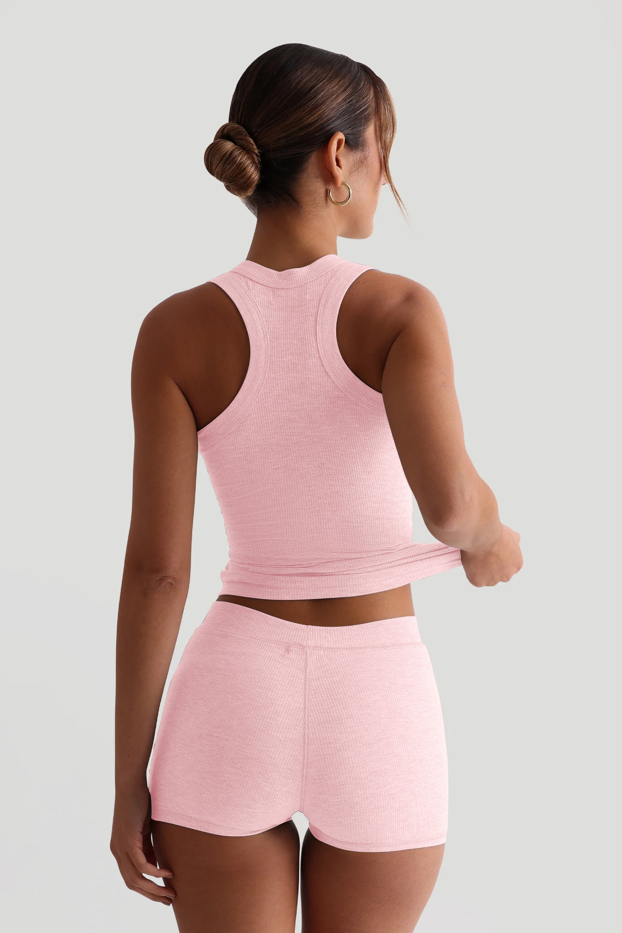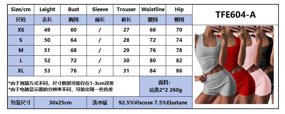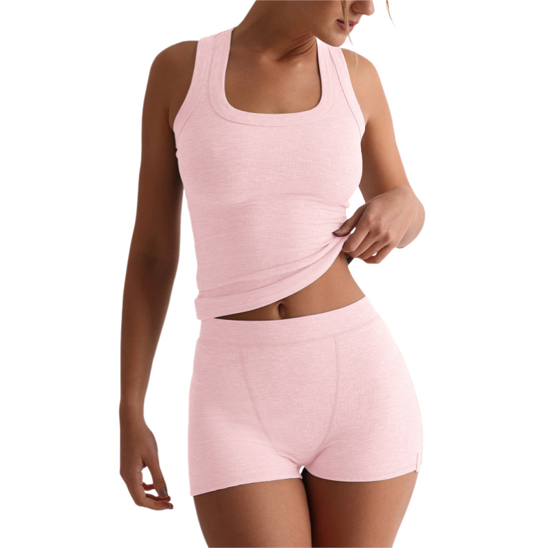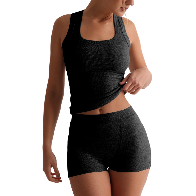 여성 캐주얼 솔리드 컬러 라운드 넥 슬림 탱크 탑 하이 웨이스트 반바지 세트 섹시한 핫 소녀 세트 Y2K 유럽 대외 무역스토어 가기