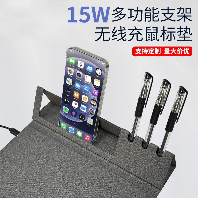 공장 직판 마우스 패드 창의적인 무선 충전기 15W 다기능 펜 홀더 무선 충전기 휴대폰 거치대스토어 가기