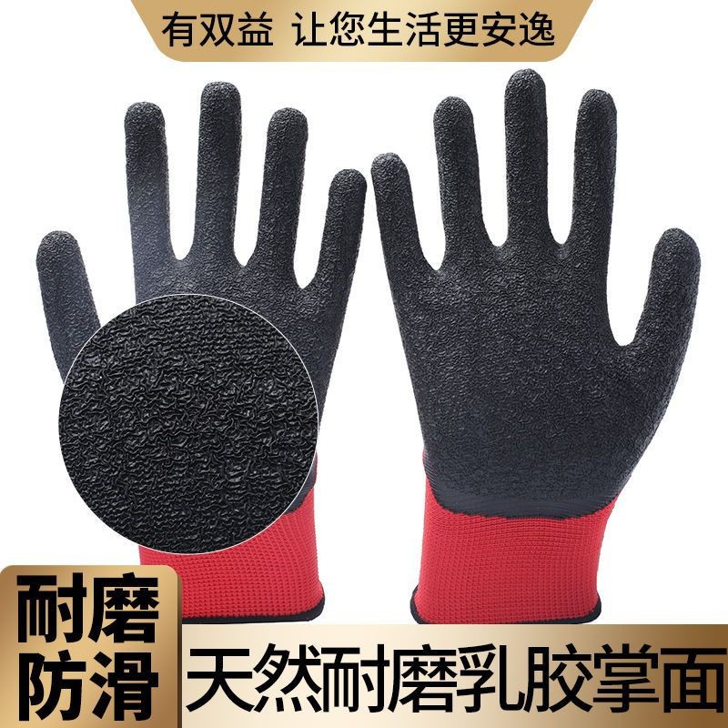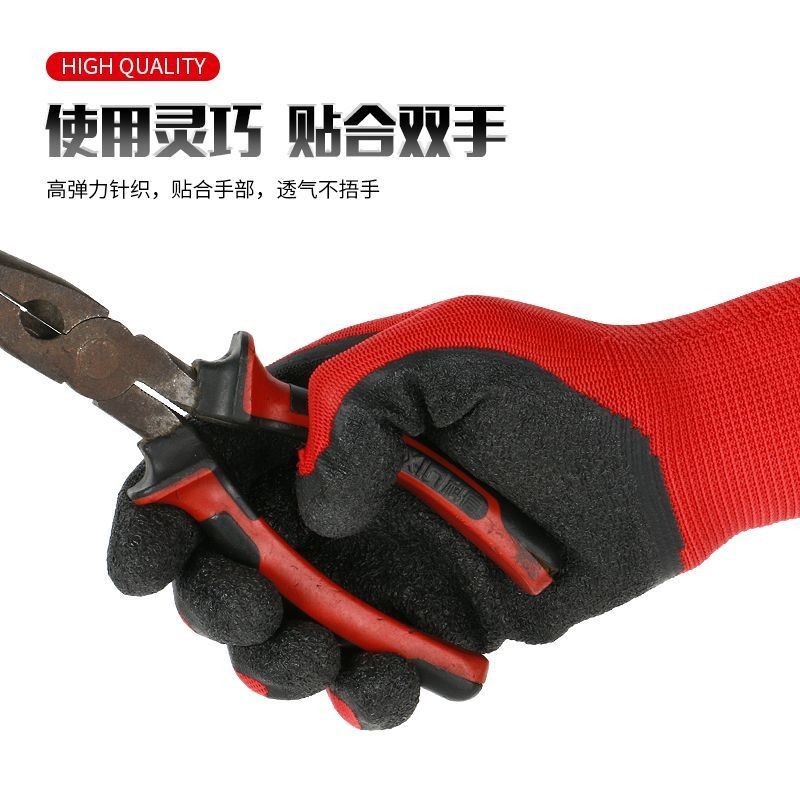 건설 현장 작업용 고무 장갑, 라텍스 함침 내마모성, 두꺼운 미끄럼 방지 주름 노동 보호 장갑 도매스토어 가기