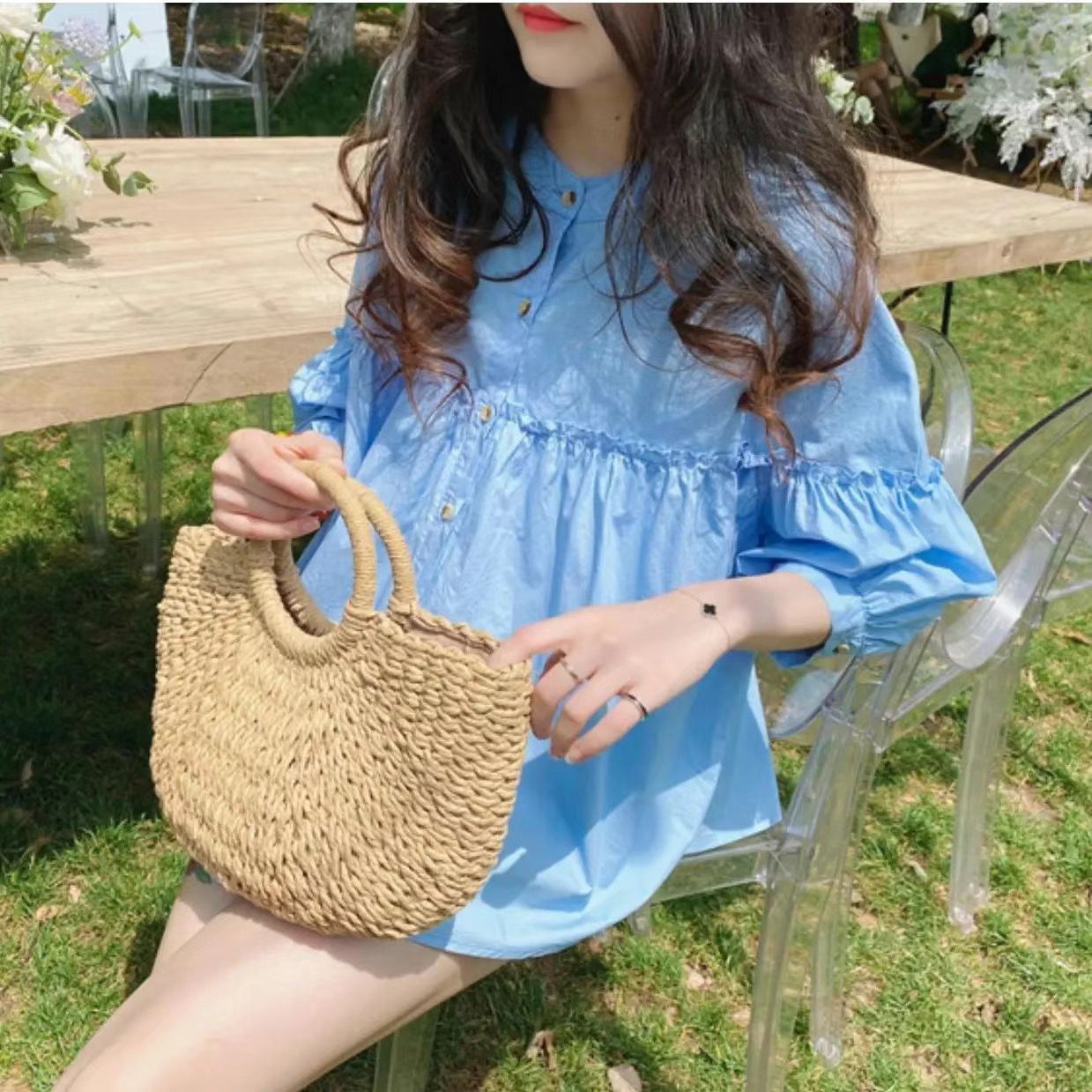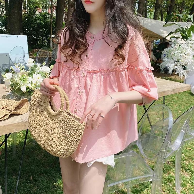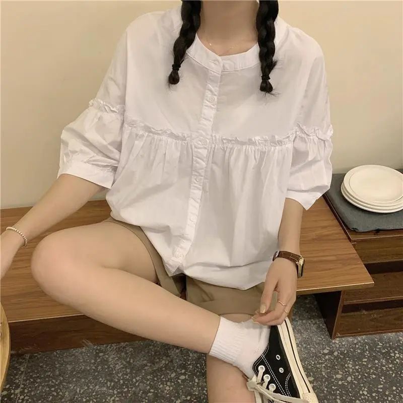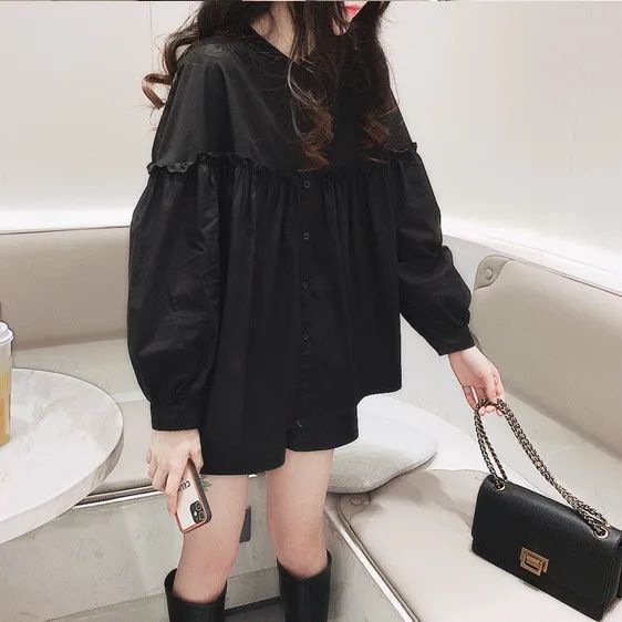여성용 2026 봄 여름 한국 스타일의 나이를 줄여주는 루즈핏 슬리밍 쉬폰 셔츠, 다용도로 활용 가능한 달콤하고 푹신한 블라우스