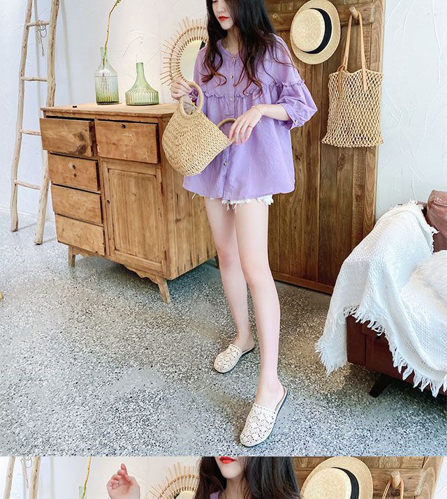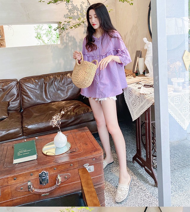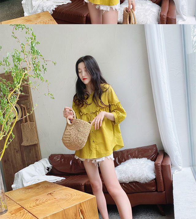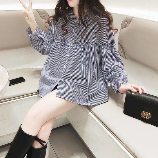 여성용 2026 봄 여름 한국 스타일의 나이를 줄여주는 루즈핏 슬리밍 쉬폰 셔츠, 다용도로 활용 가능한 달콤하고 푹신한 블라우스스토어 가기
