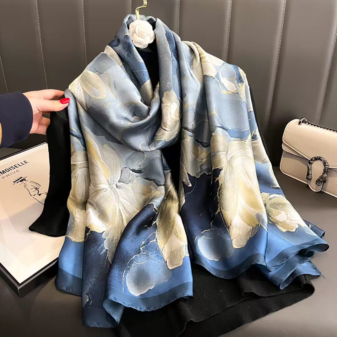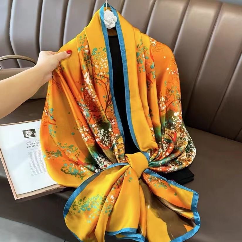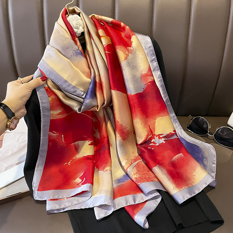 항주 실크 스카프 여자 올 매치 봄과 가을 서양 스타일 유행 긴 외부 목도리 겨울 얇은 고급 스카프