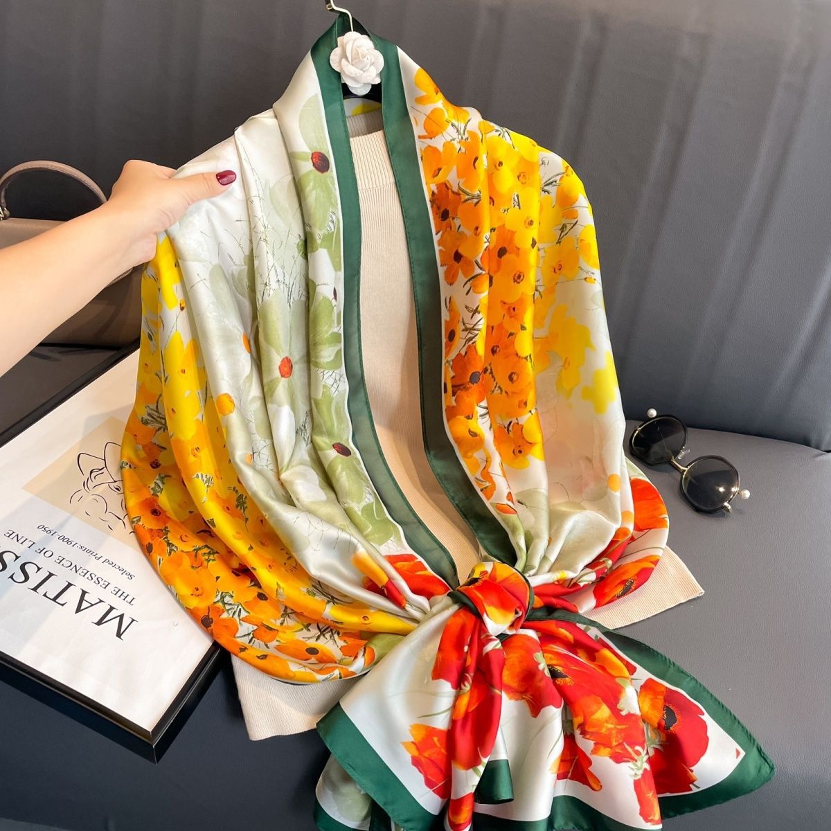 항주 실크 스카프 여자 올 매치 봄과 가을 서양 스타일 유행 긴 외부 목도리 겨울 얇은 고급 스카프스토어 가기