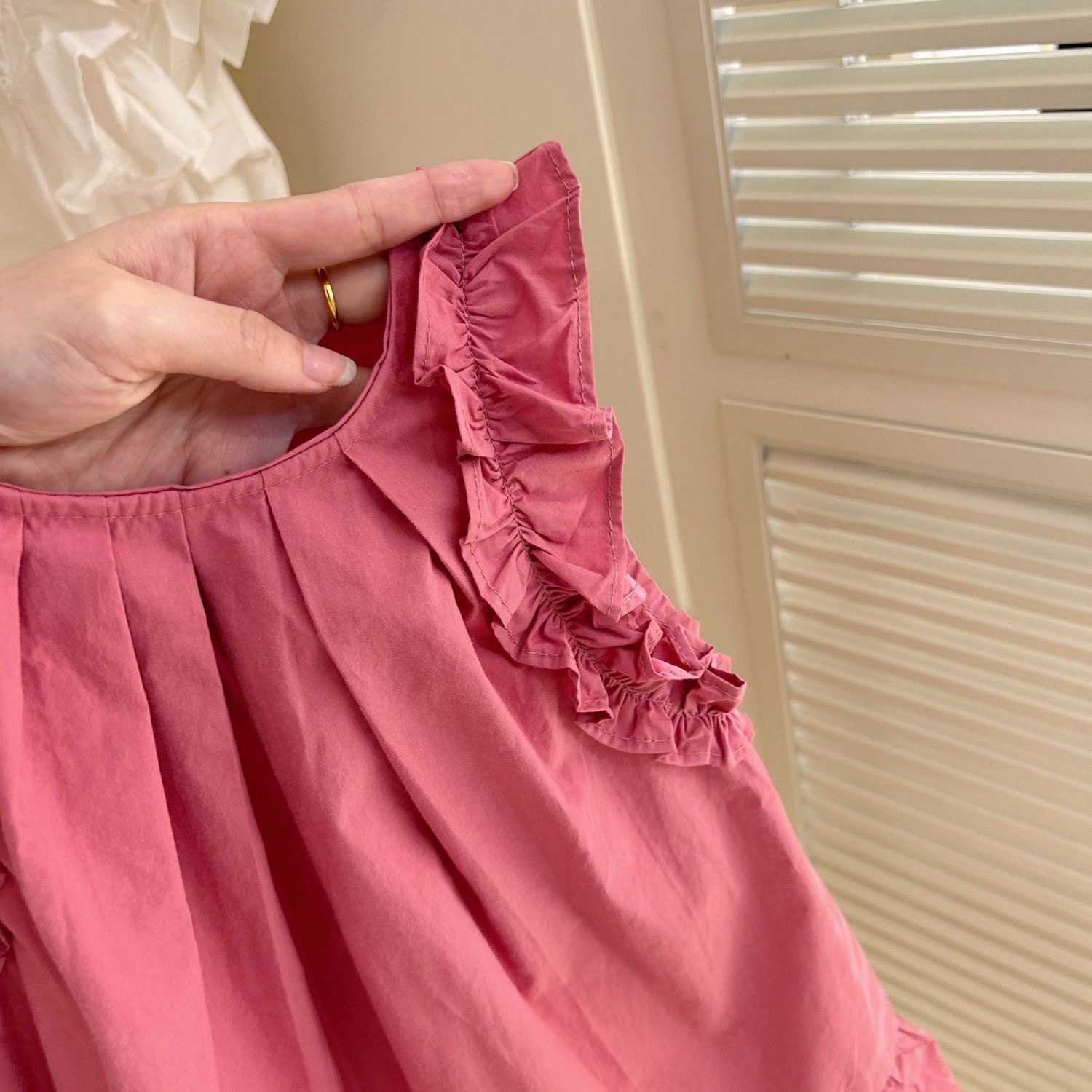 2025 한국 스타일 소녀 여름 기질 랜턴 스커트 어린이 연잎 레이스 스커트 느슨한 어린이 공주 드레스스토어 가기