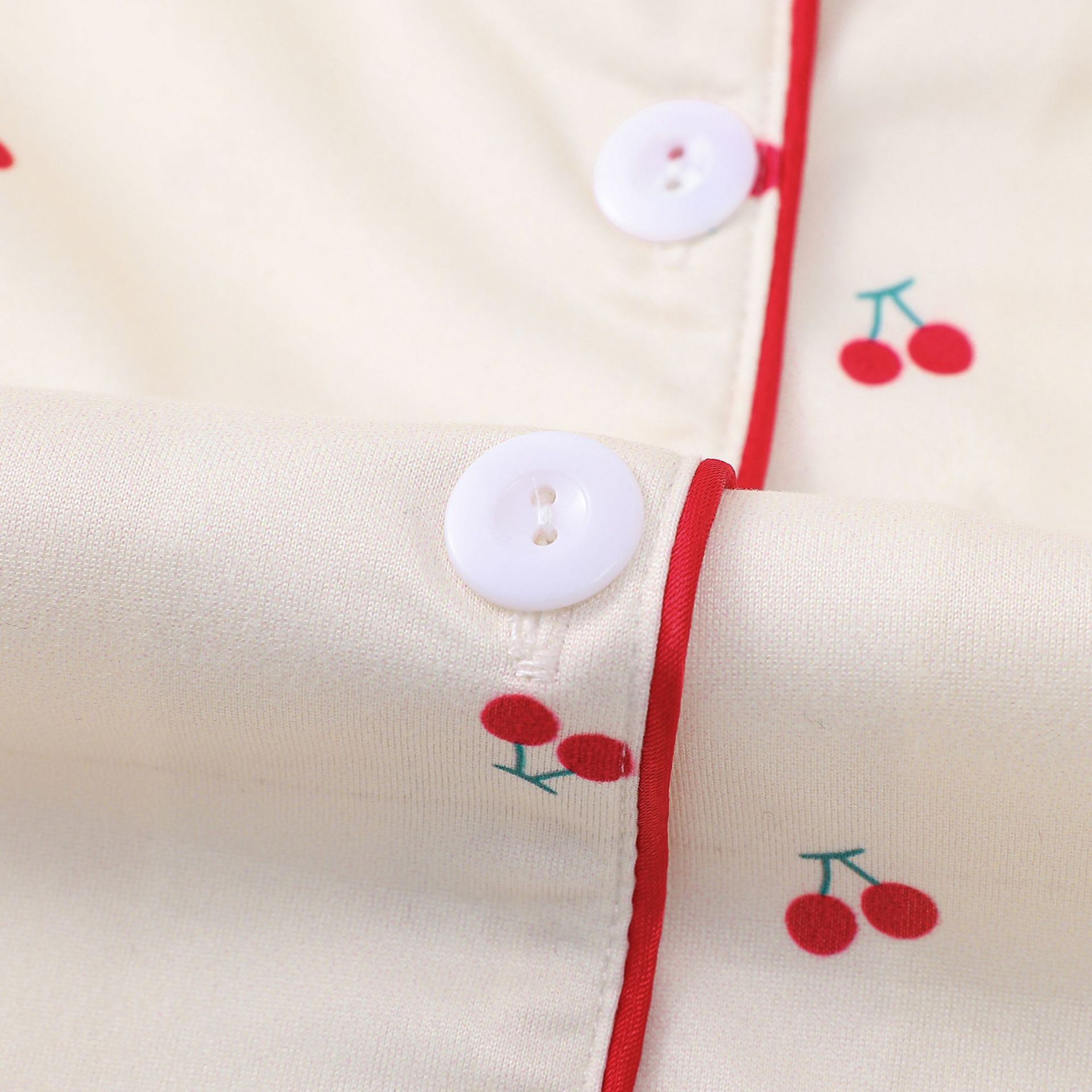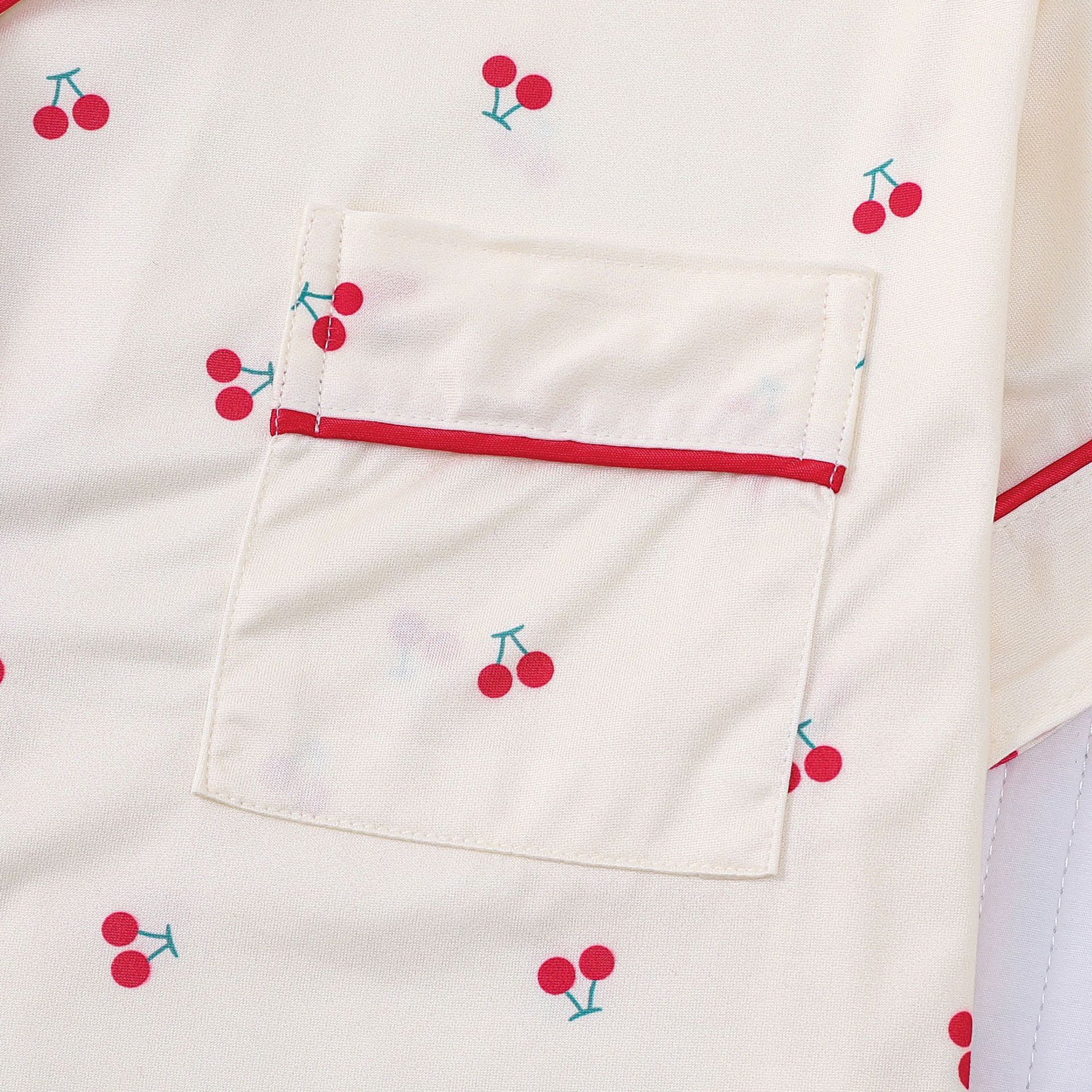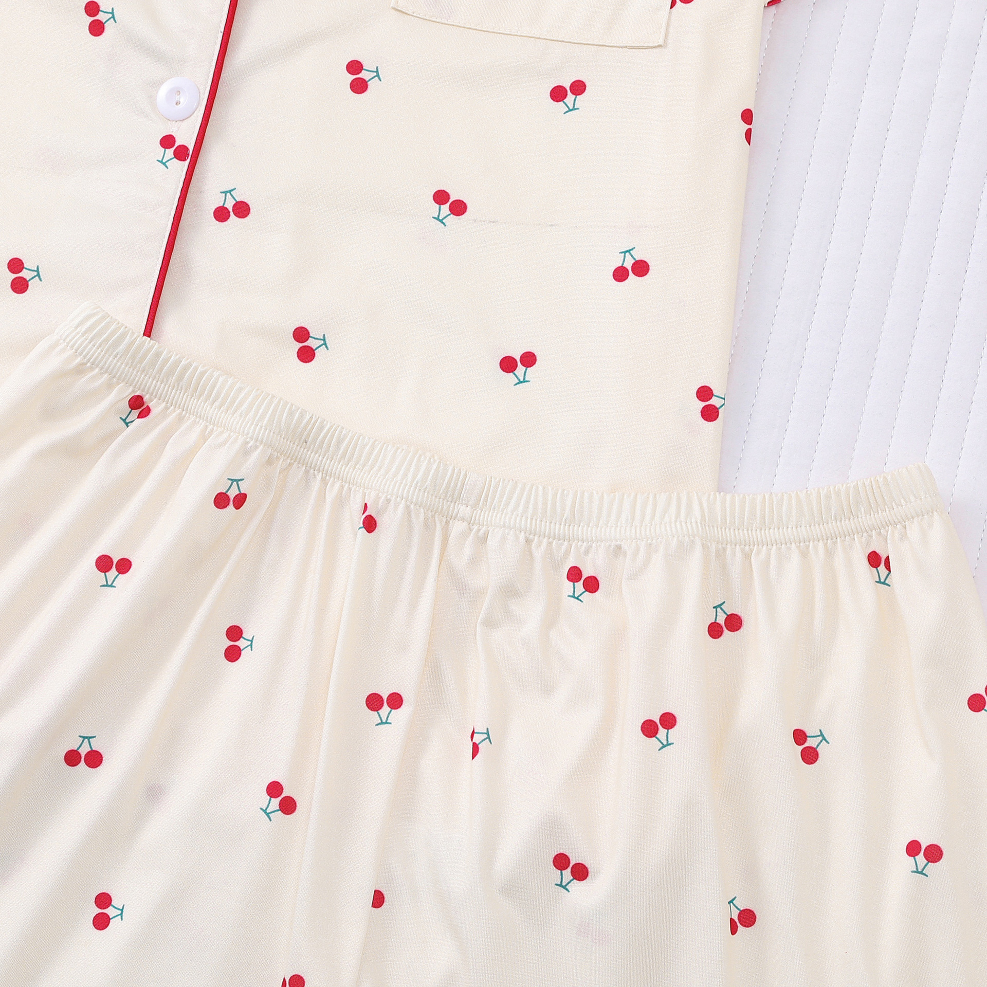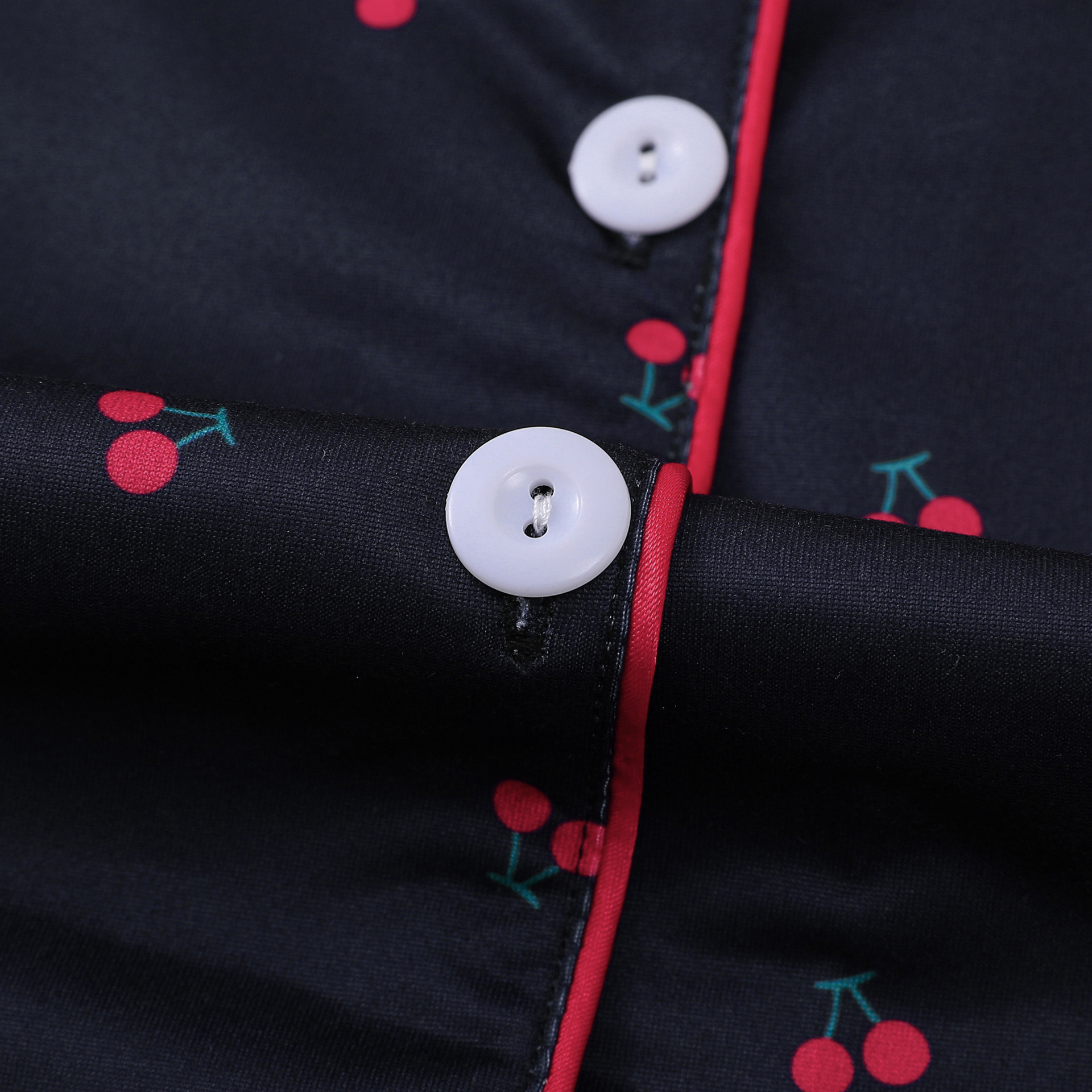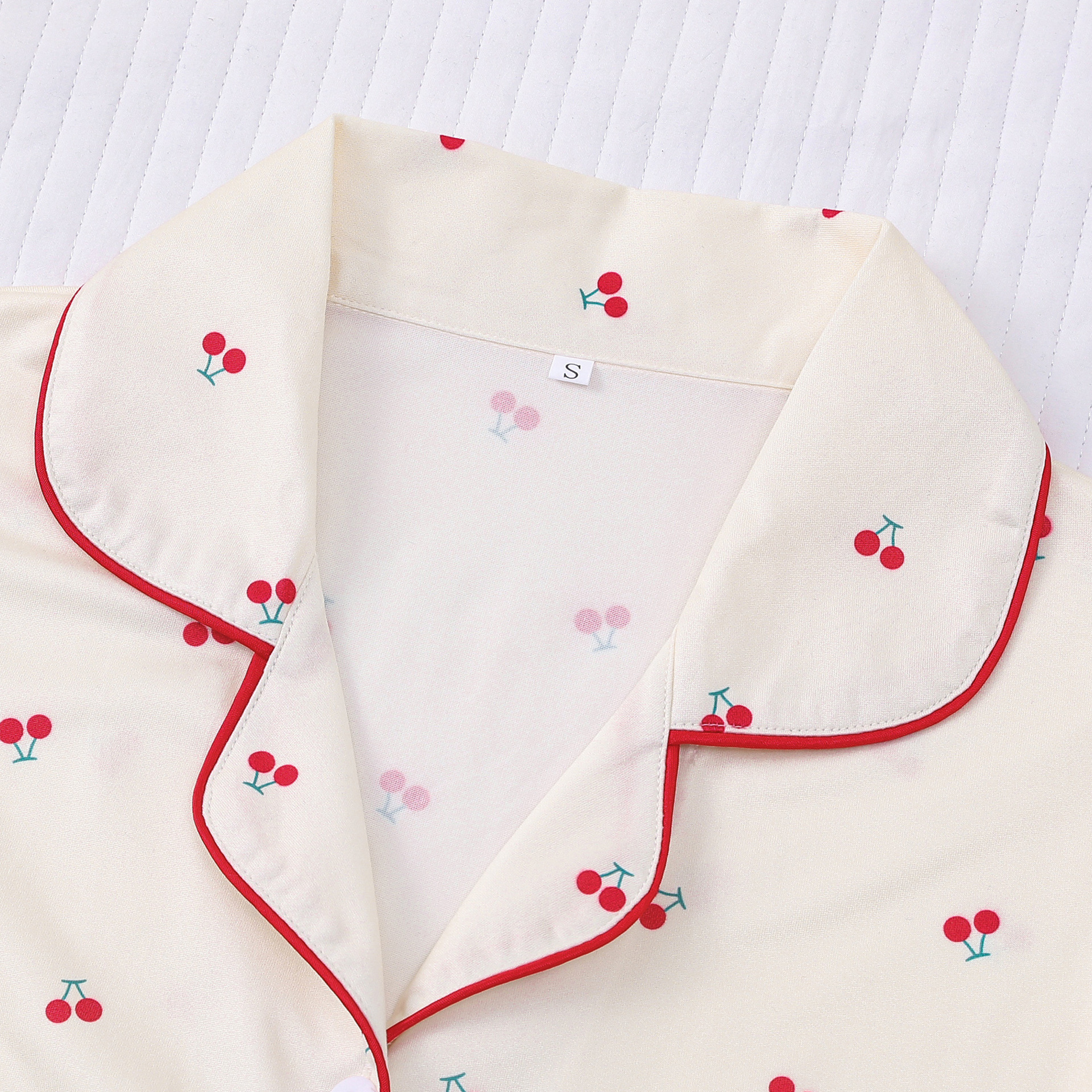 국경 간 대외 무역 새로운 유럽과 미국 여성 잠옷 체리 프린트 라펠 반팔 반바지 유럽과 미국의 홈웨어 세트