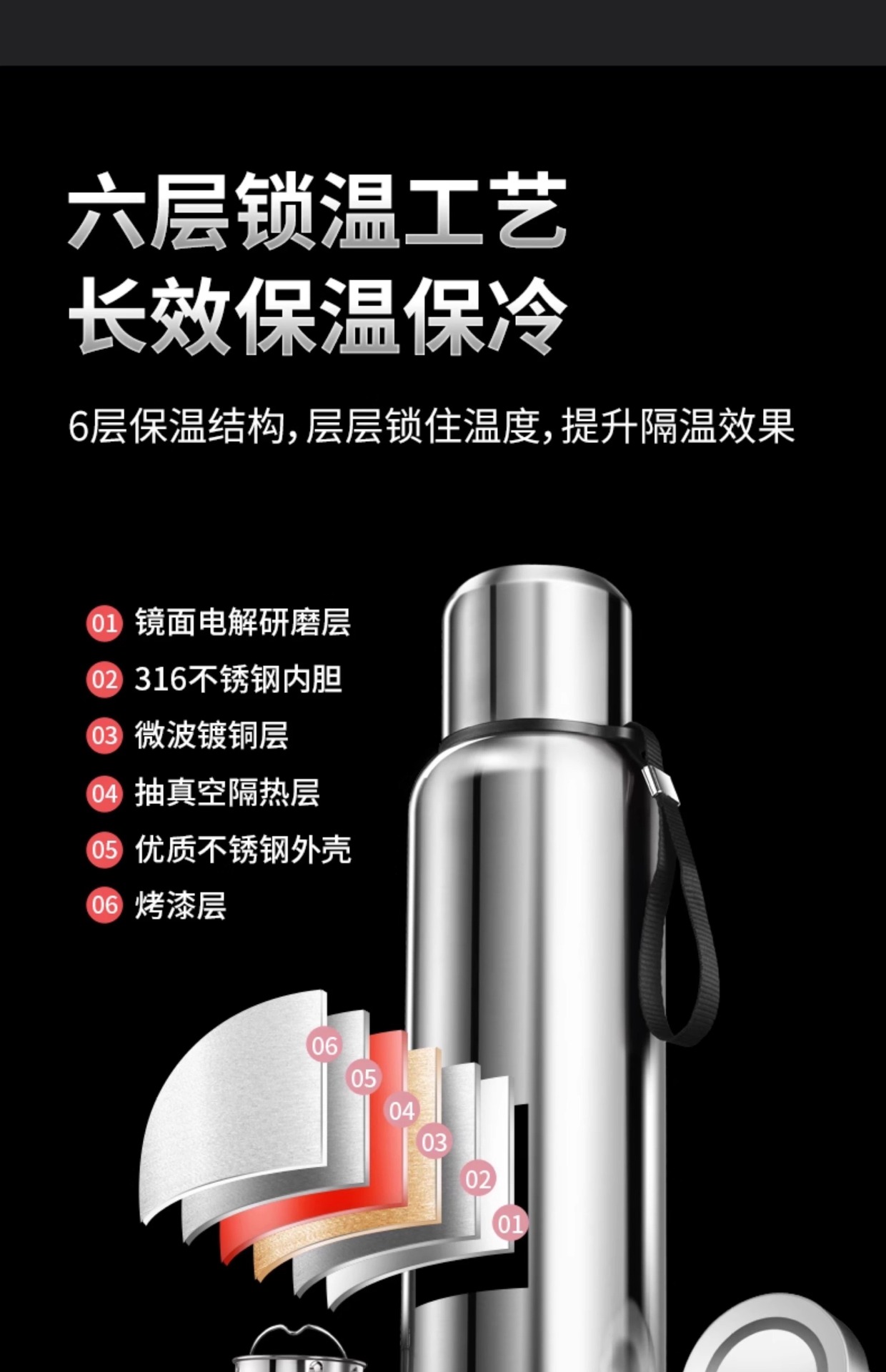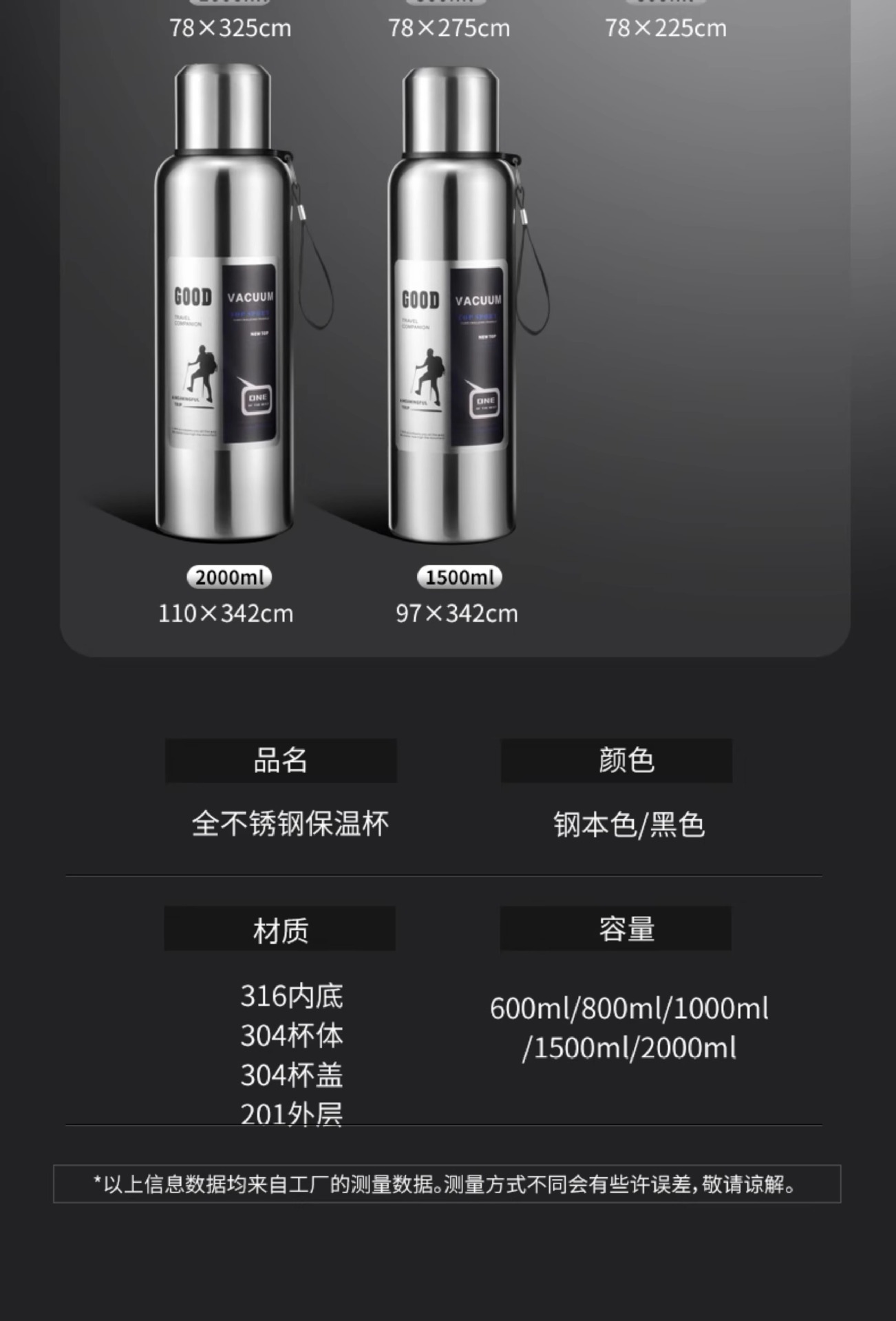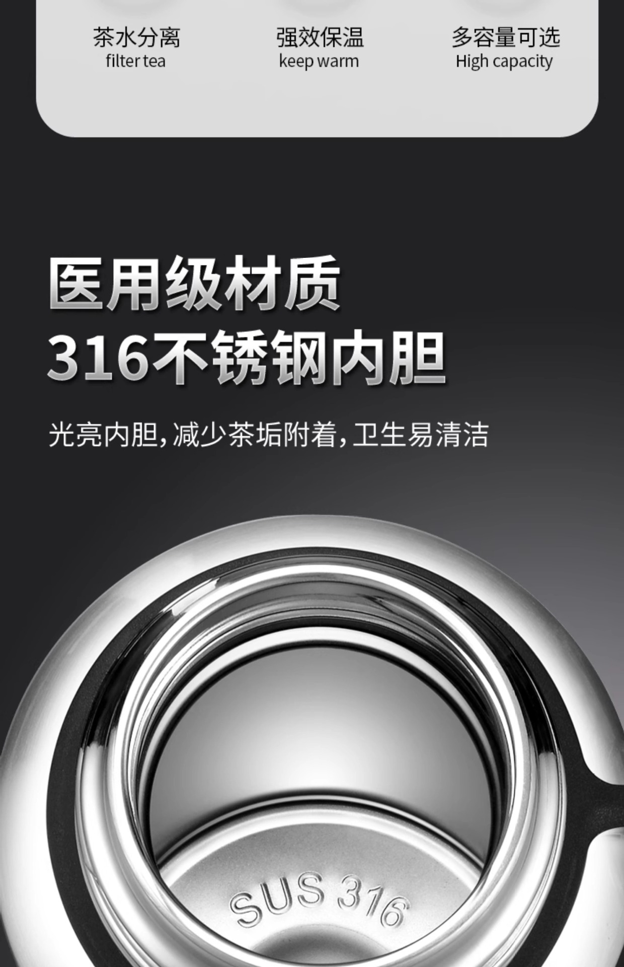 316 스테인레스 스틸 라이너 대용량 진공 올 스틸 보온병 컵 야외 여행 등산 피트니스 휴대용 보온병 냄비