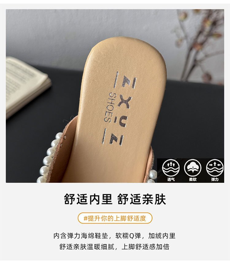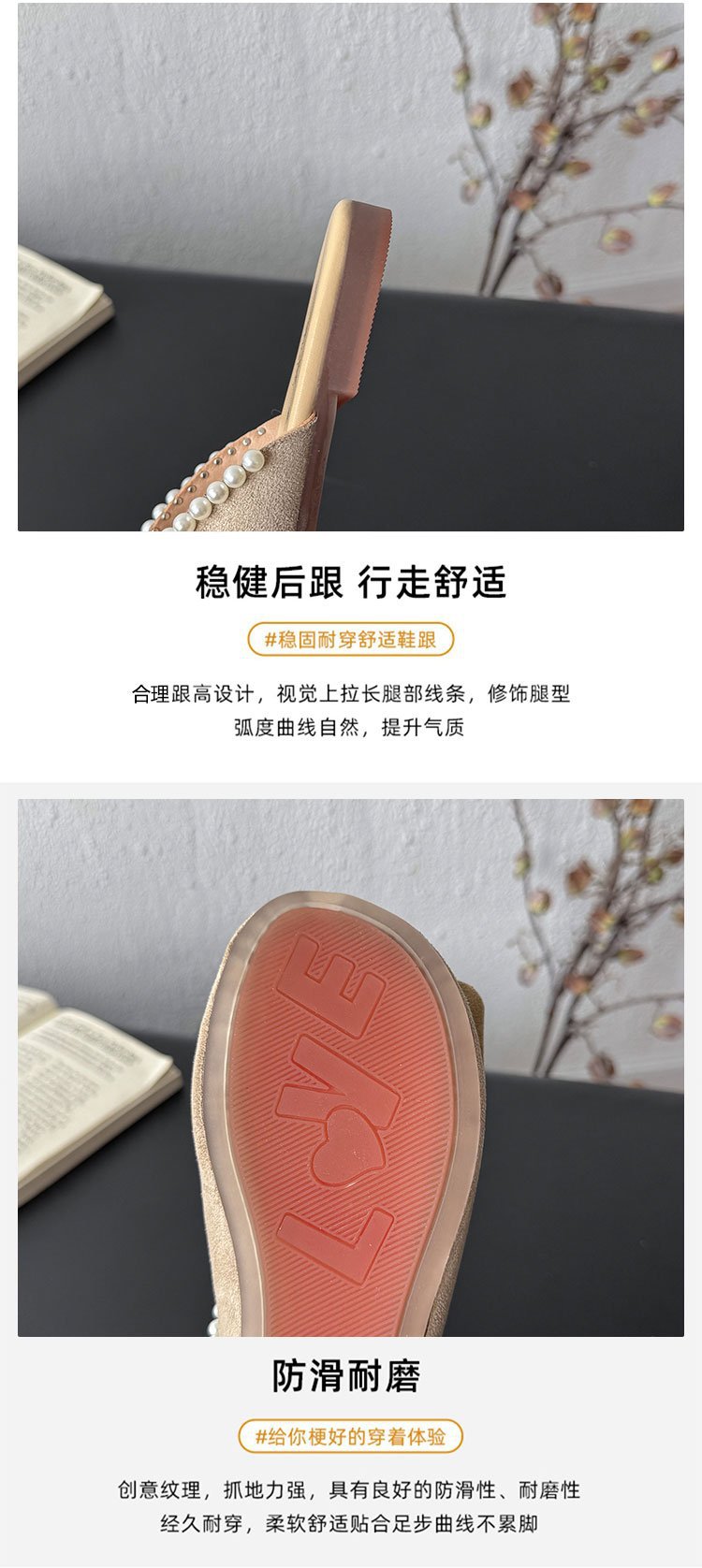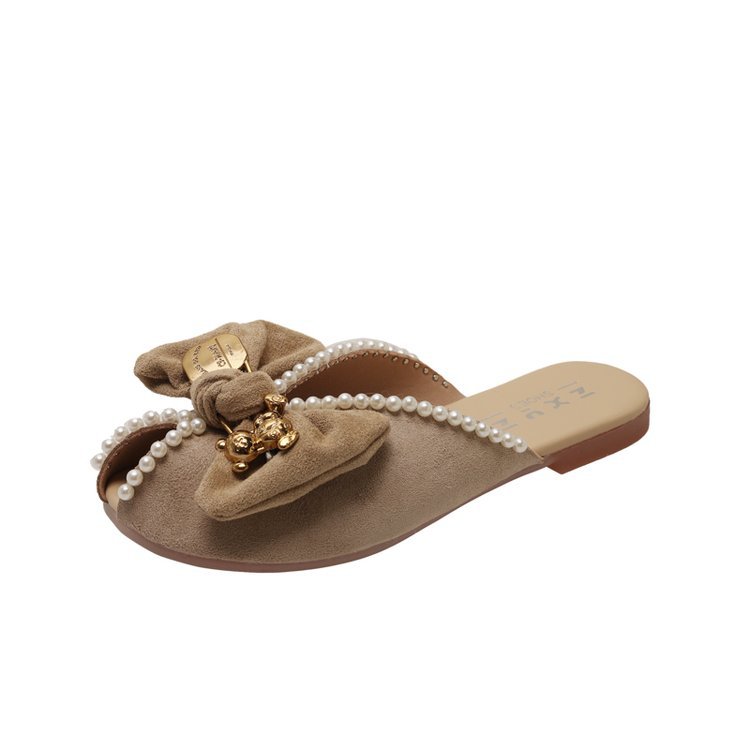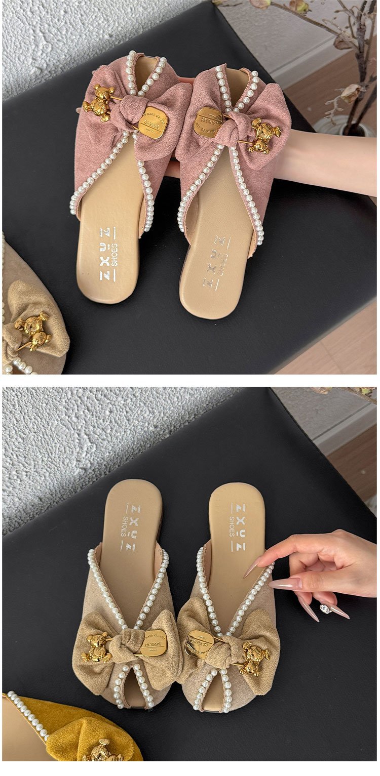 인터넷 연예인 진주 플랫 통기성 하프 슬리퍼 유행 여성 겉옷 2025 여름 새로운 패션 나비 매듭 발가락 샌들스토어 가기