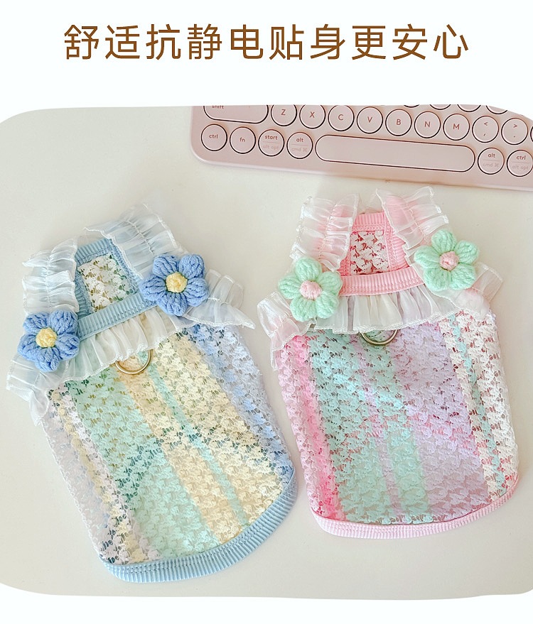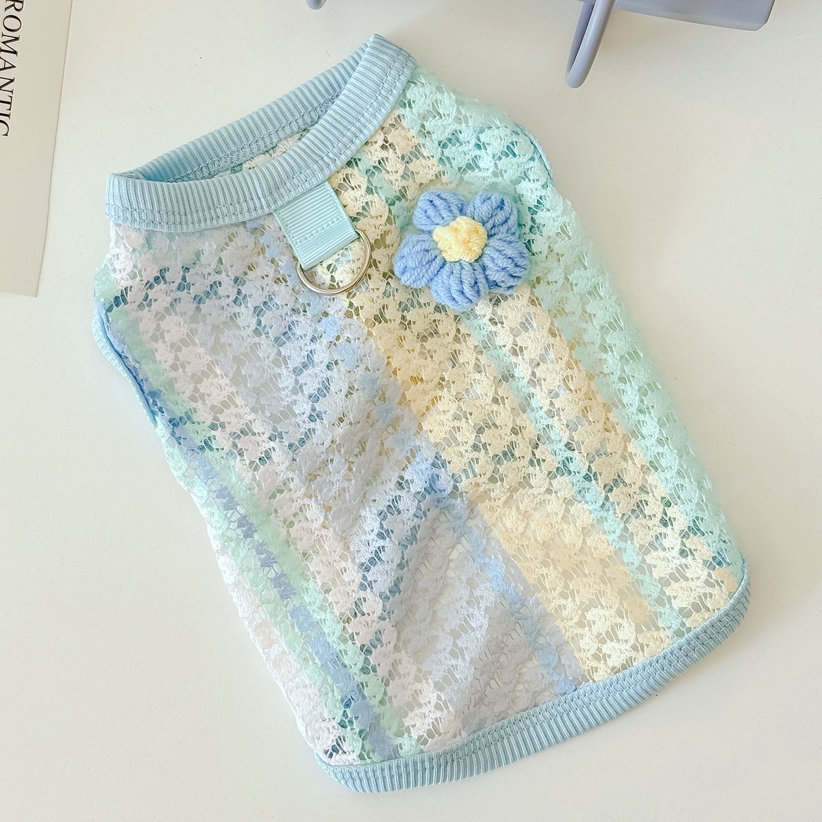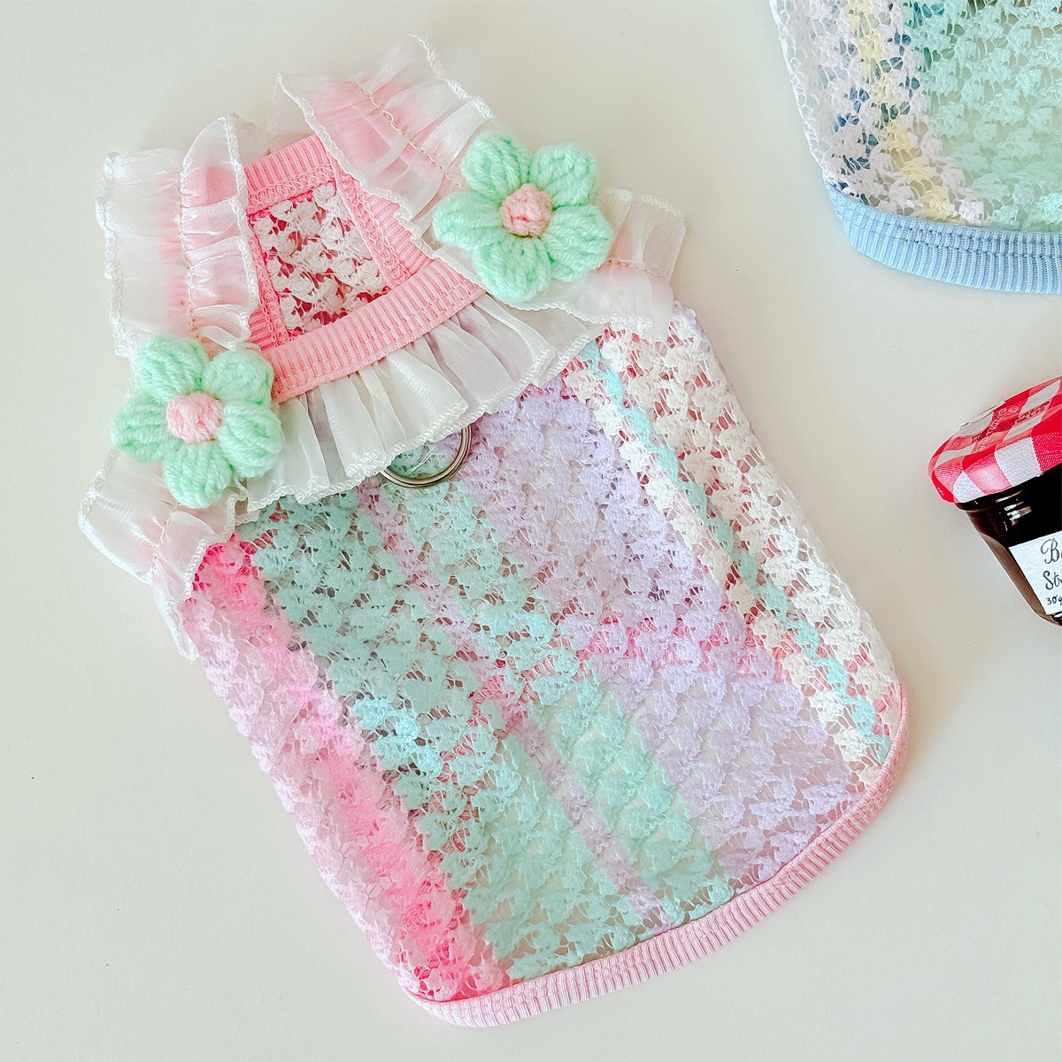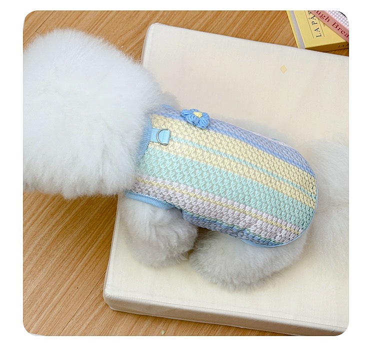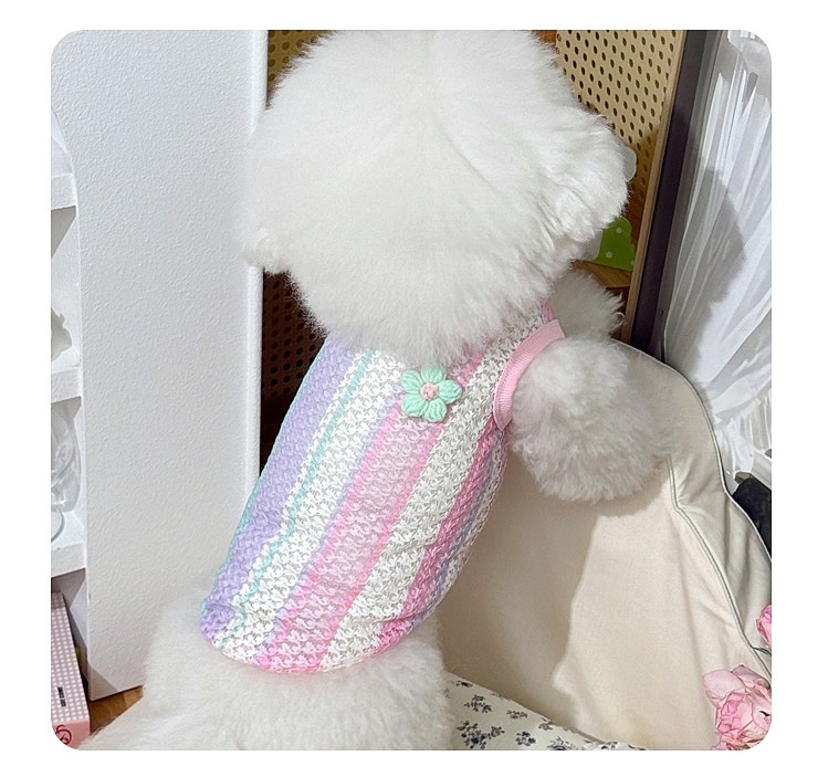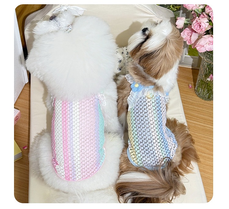 봄과 여름 개 무지개 대비 중공 스트랩 고양이 얇은 테디 베어 조끼 애완 동물 개 옷 도매