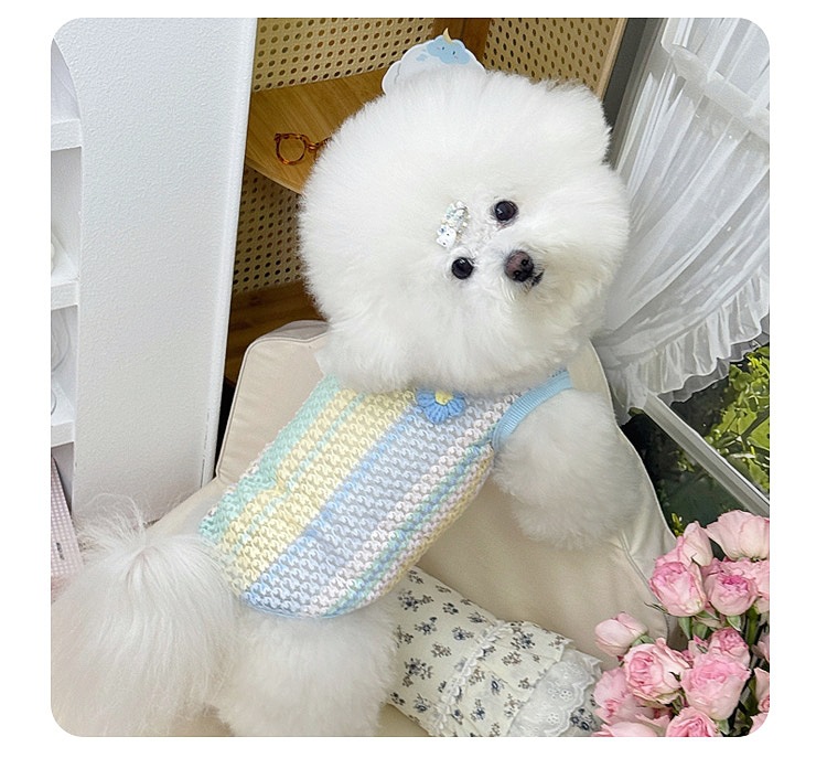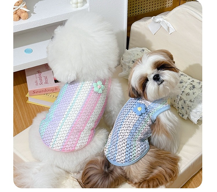봄과 여름 개 무지개 대비 중공 스트랩 고양이 얇은 테디 베어 조끼 애완 동물 개 옷 도매스토어 가기