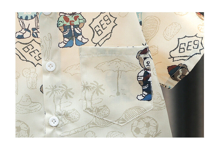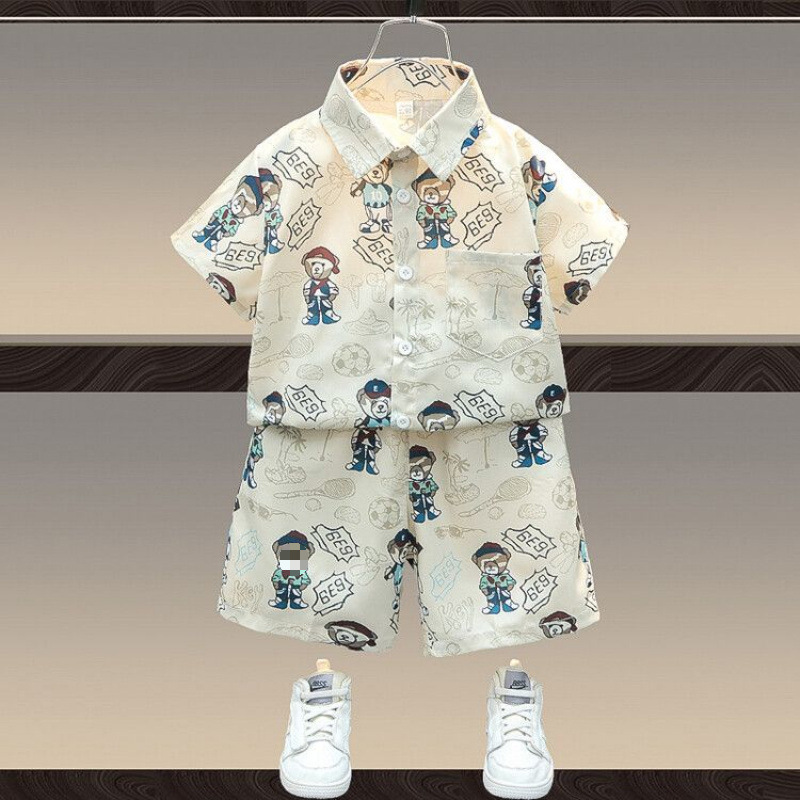 아동복 소년 여름 정장 2024 새로운 스타일 아동용 반팔 셔츠 유행 아기 소년 잘 생긴 거리 옷스토어 가기