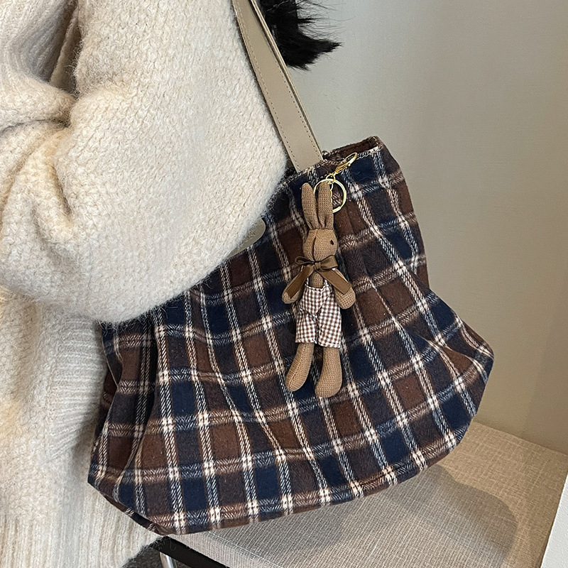 틈새 레트로 격자 무늬 토트 휴대용 핸드백 대용량 언더암 가방 고 가치 대학생 경량 천 가방