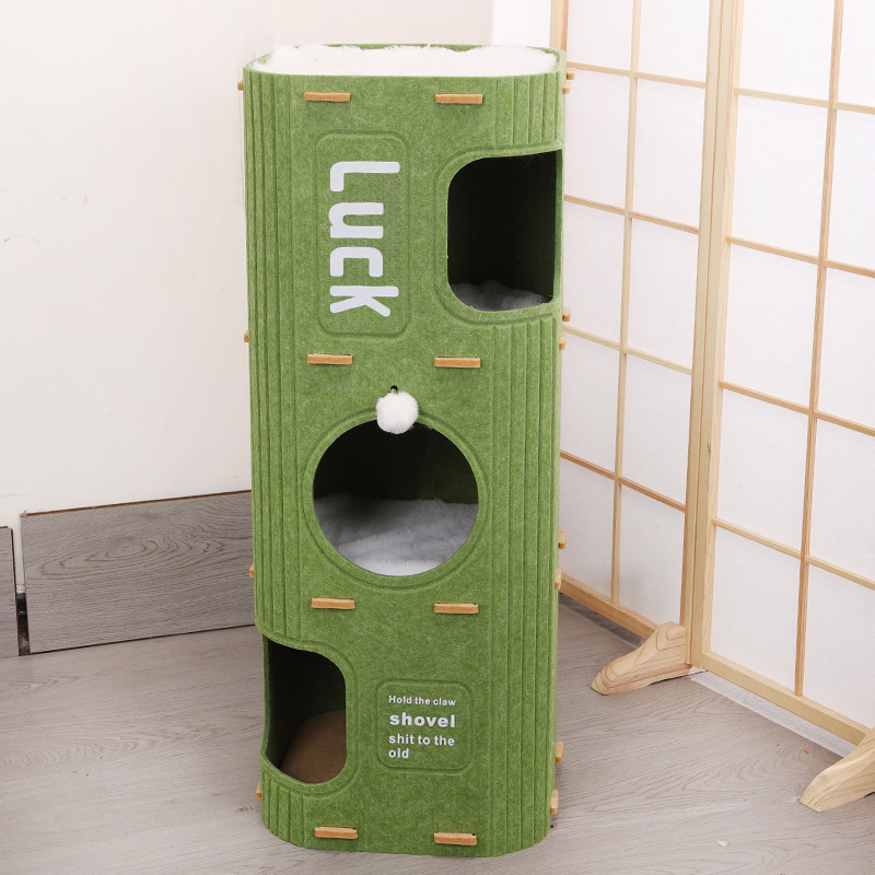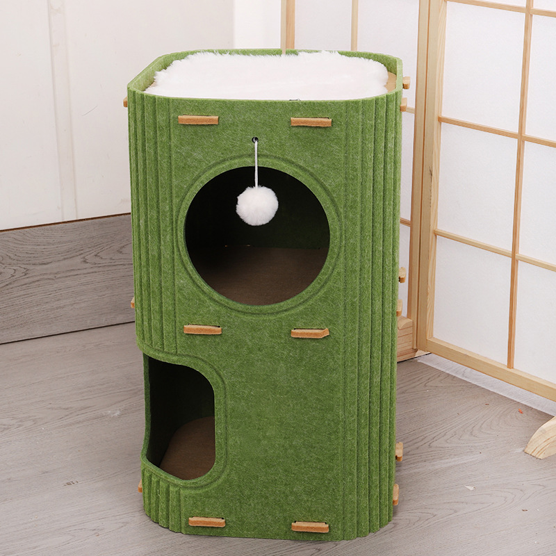 • 매트가 없는 이중층 고양이 둥지 녹색(여러 마리의 고양이를 위한 펠트 버전 사용 가능)
