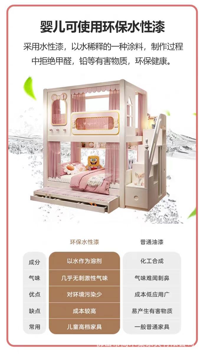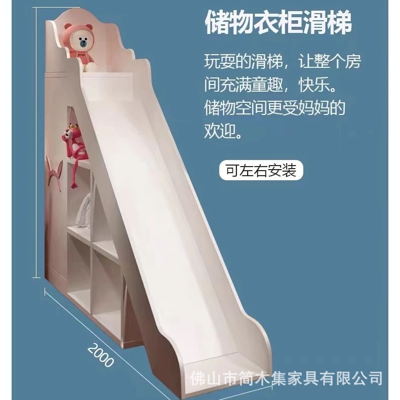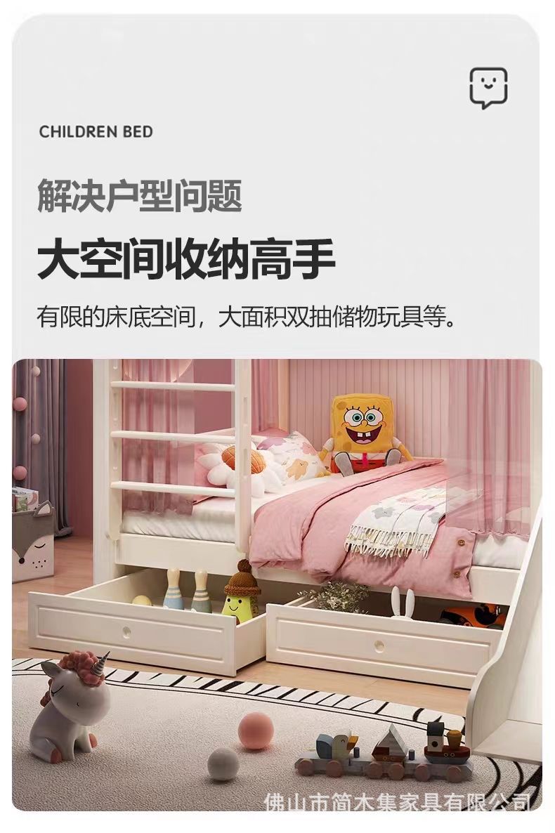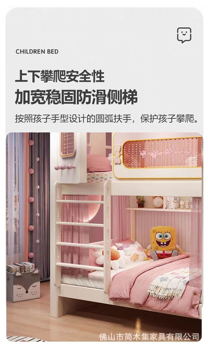 어린이 이층침대, 성슬라이드침대, 다기능 이층침대, 핑크색 높은 가드레일, 어린이 이층침대, 위아래 너비 동일