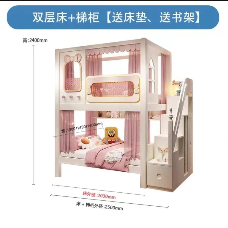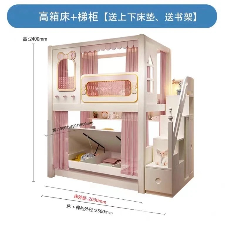 • 높은 상자 침대 + 사다리 캐비닛 + 매트리스 2개
