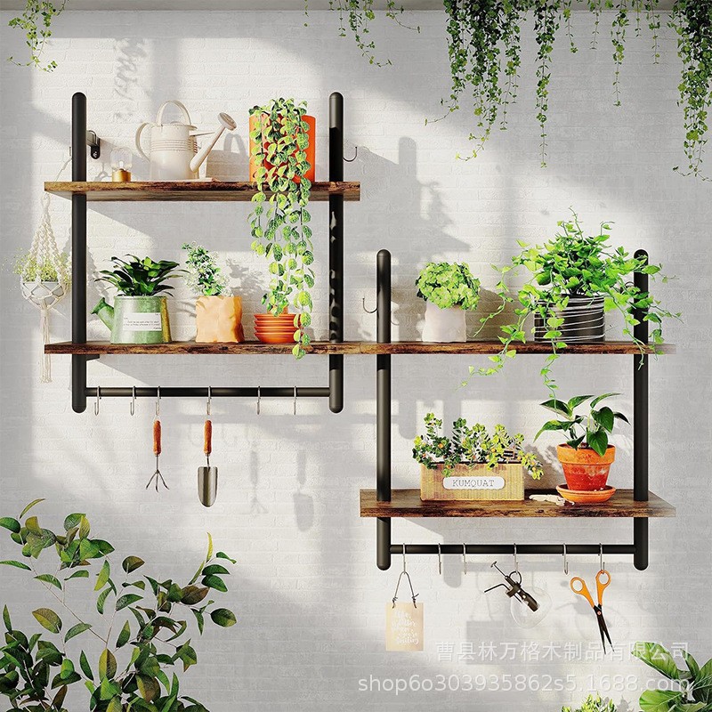 제조 업체 도매 단단한 나무 선반 벽걸이 형 주방 용품 정리 선반 홈 벽 장식품 장식 선반 pothos