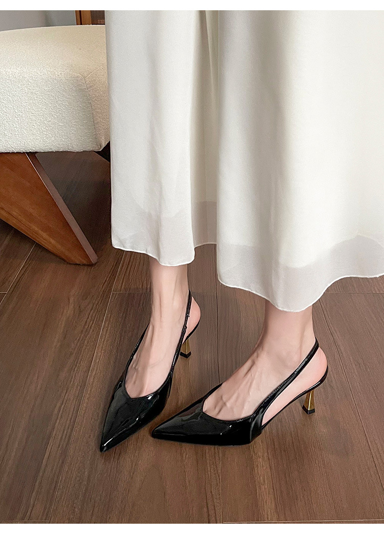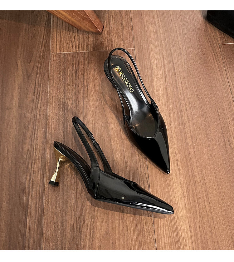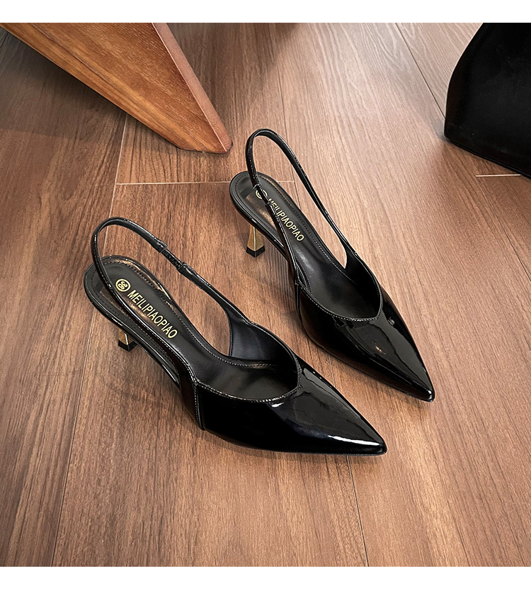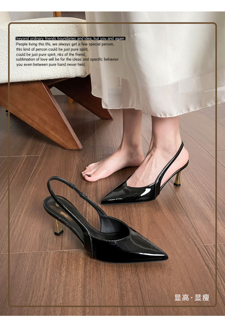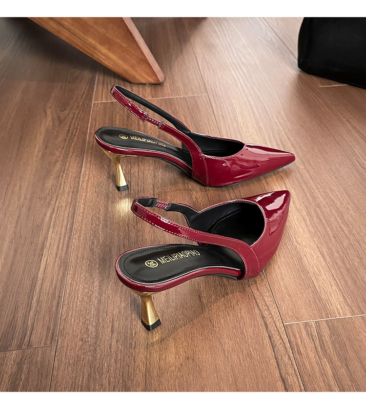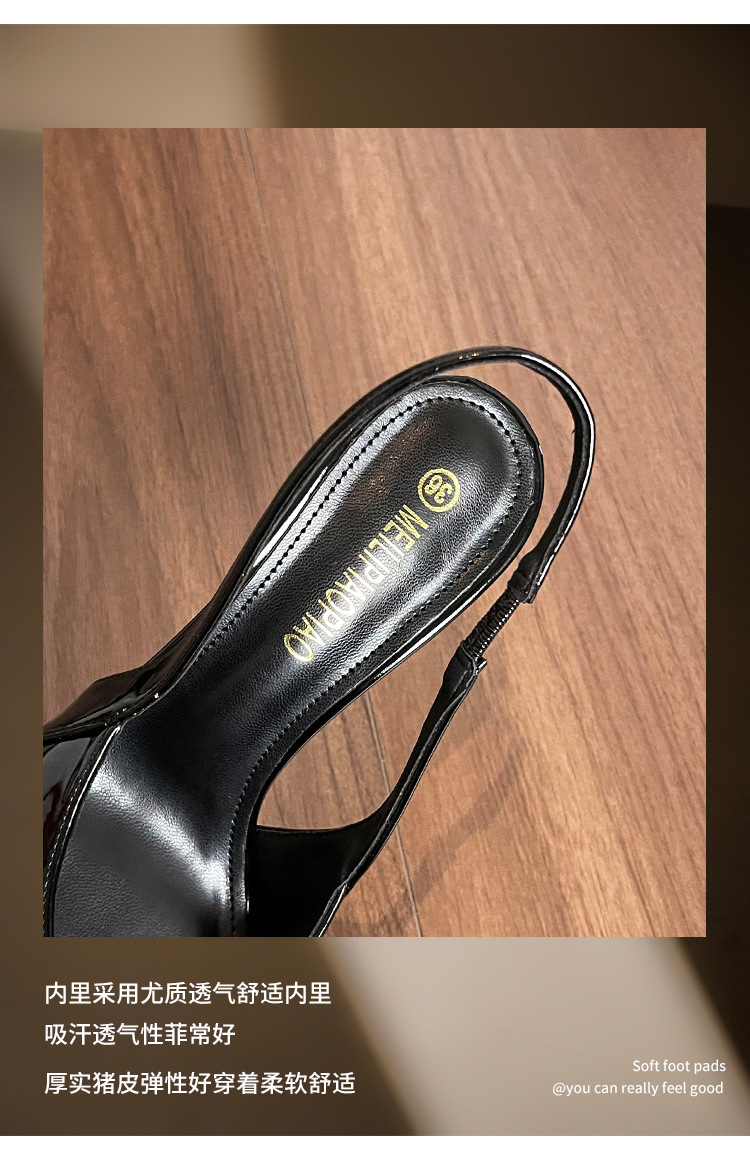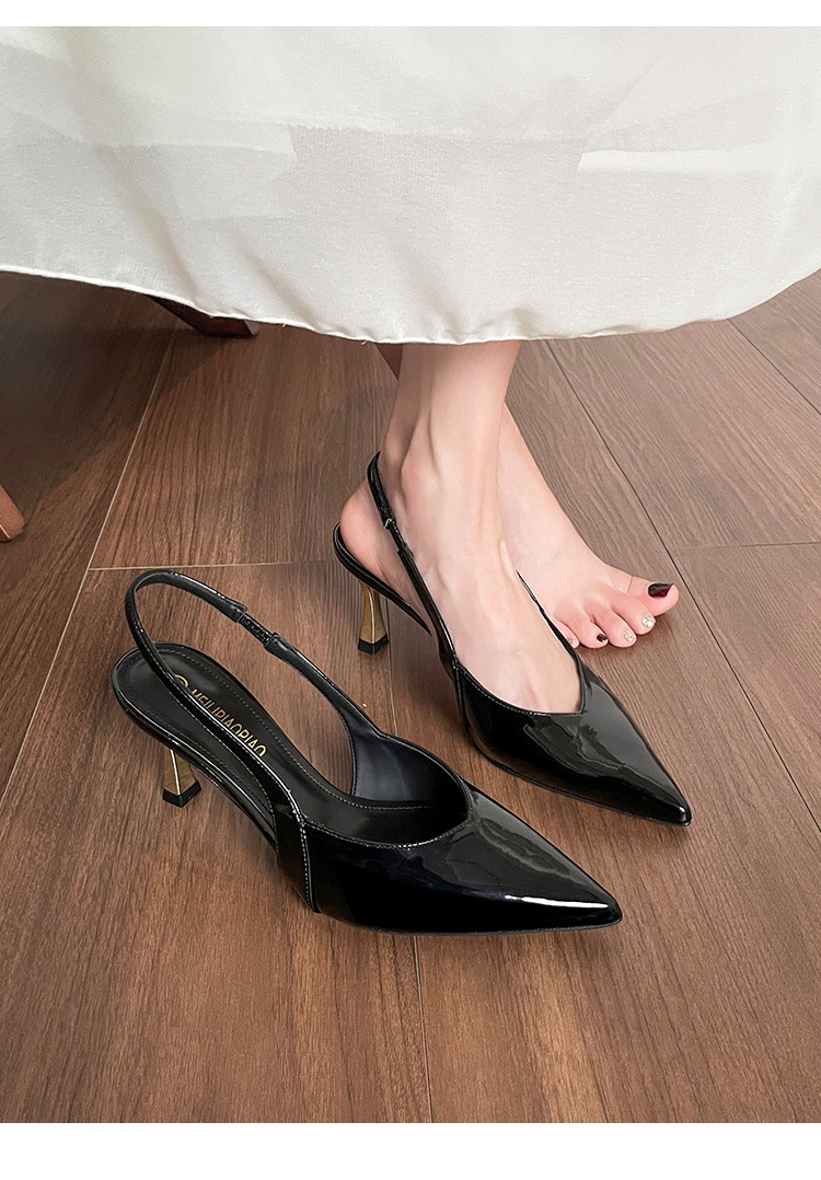 여성을위한 프렌치 페이턴트 가죽 발가락 샌들 2025 여름 새로운 스타일 다목적 스틸레토 힐 뾰족한 버클 스트랩 우아한 하이힐