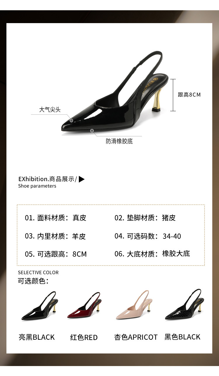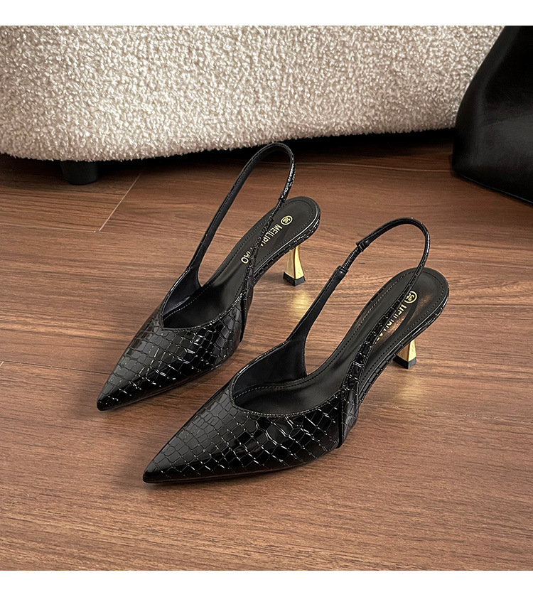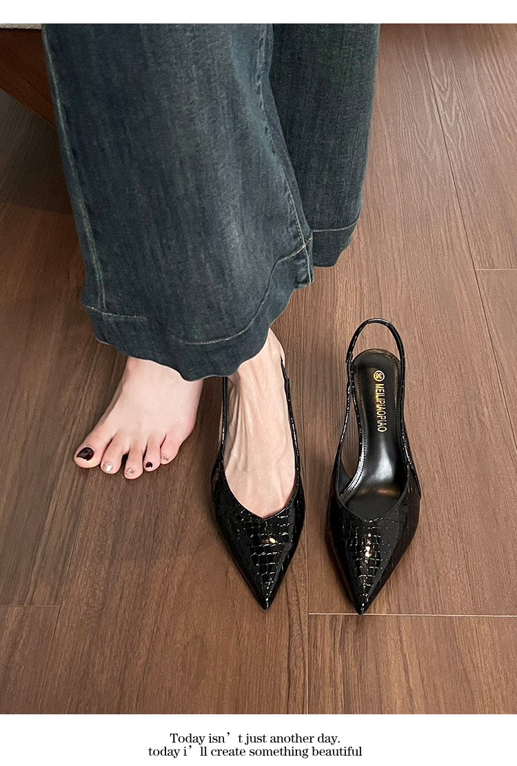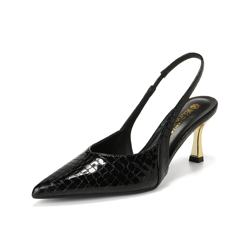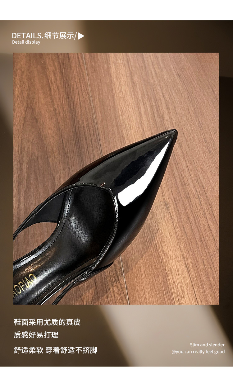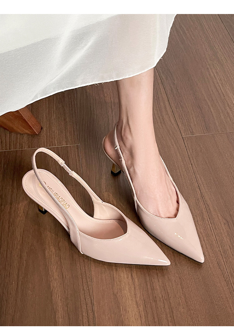 여성을위한 프렌치 페이턴트 가죽 발가락 샌들 2025 여름 새로운 스타일 다목적 스틸레토 힐 뾰족한 버클 스트랩 우아한 하이힐