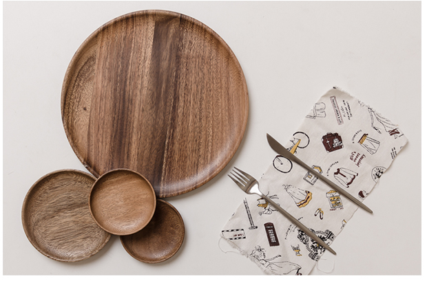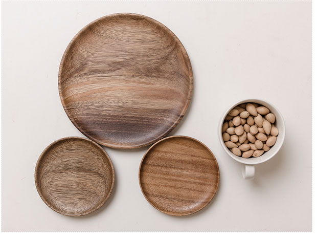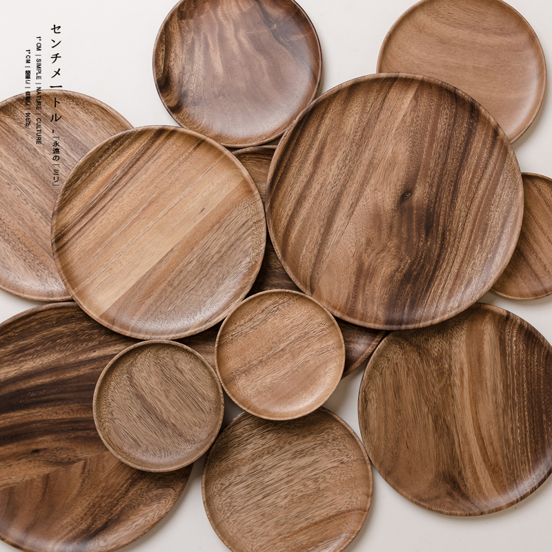 일본 아카시아 나무 트레이 디스크 스낵 플레이트 나무 접시 단단한 나무 초밥 플레이트 디스크 티 플레이트 과일 플레이트 간식스토어 가기