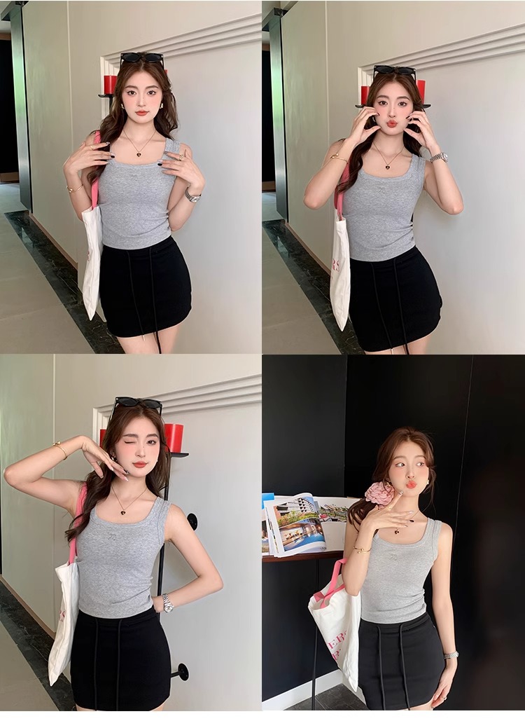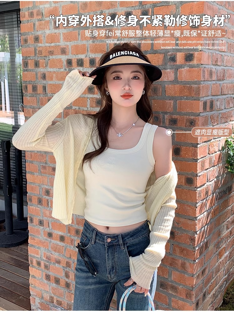 여름 신상품 여성용 유럽풍 스레드 캐미솔, 라지 사이즈, 살짝 뚱뚱한 mm, 배를 덮는 탑, 아우터