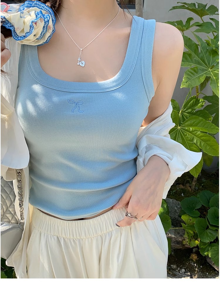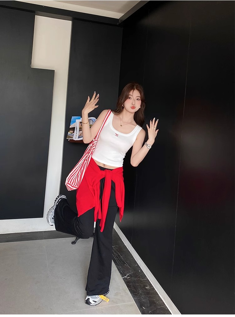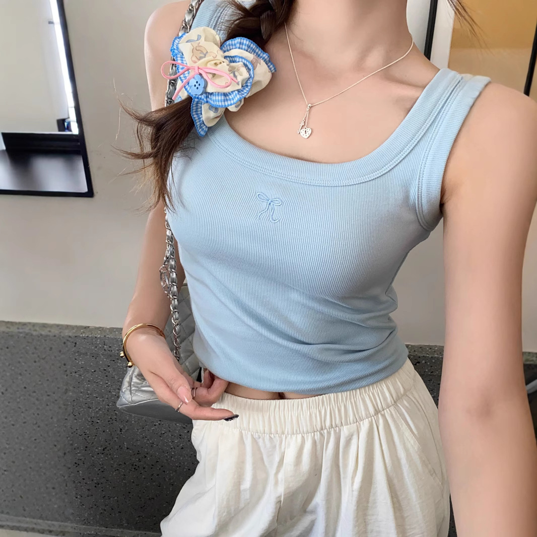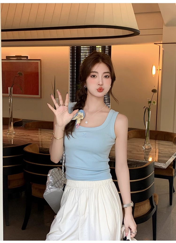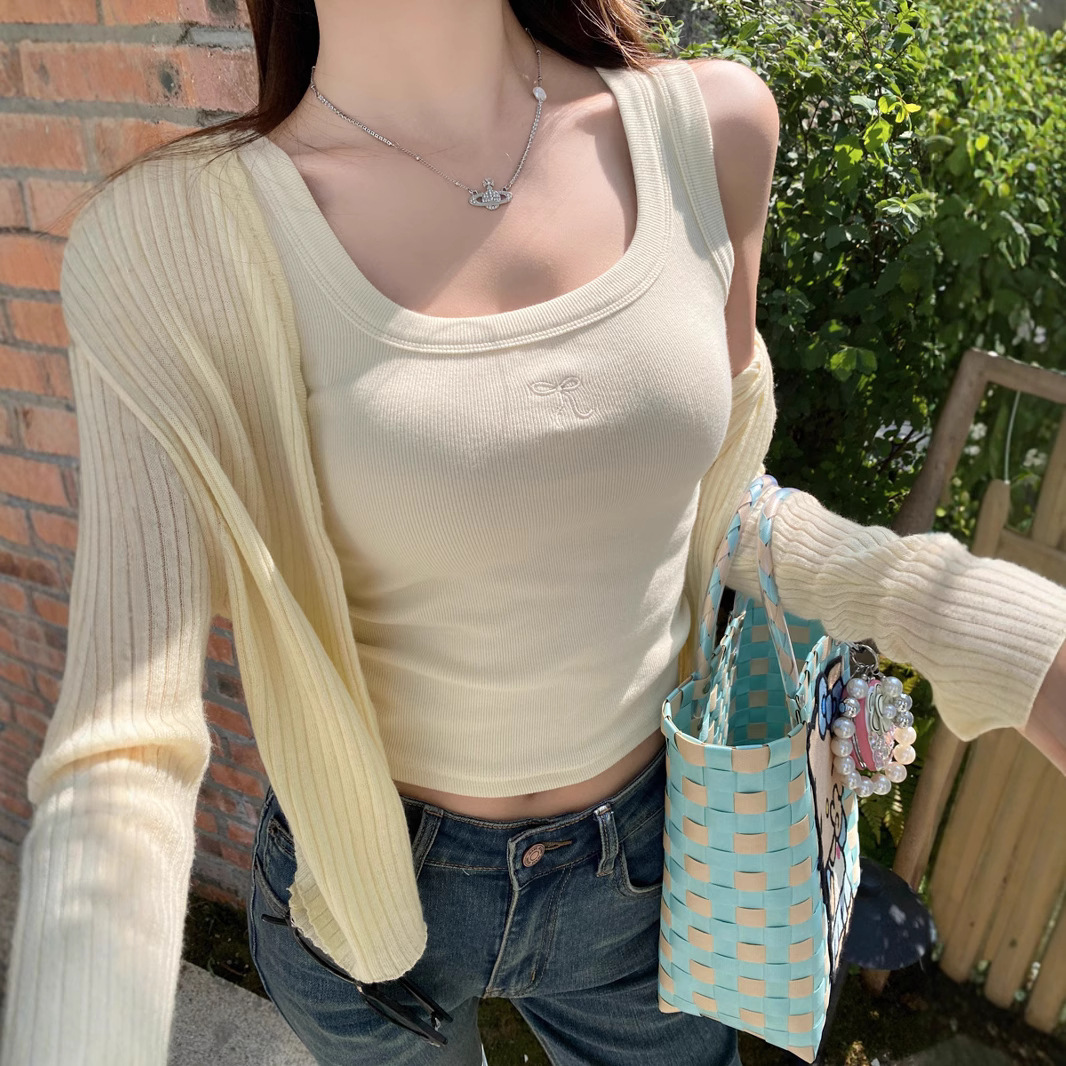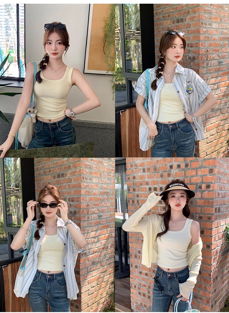 여름 신상품 여성용 유럽풍 스레드 캐미솔, 라지 사이즈, 살짝 뚱뚱한 mm, 배를 덮는 탑, 아우터스토어 가기