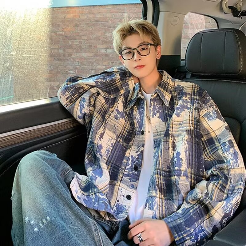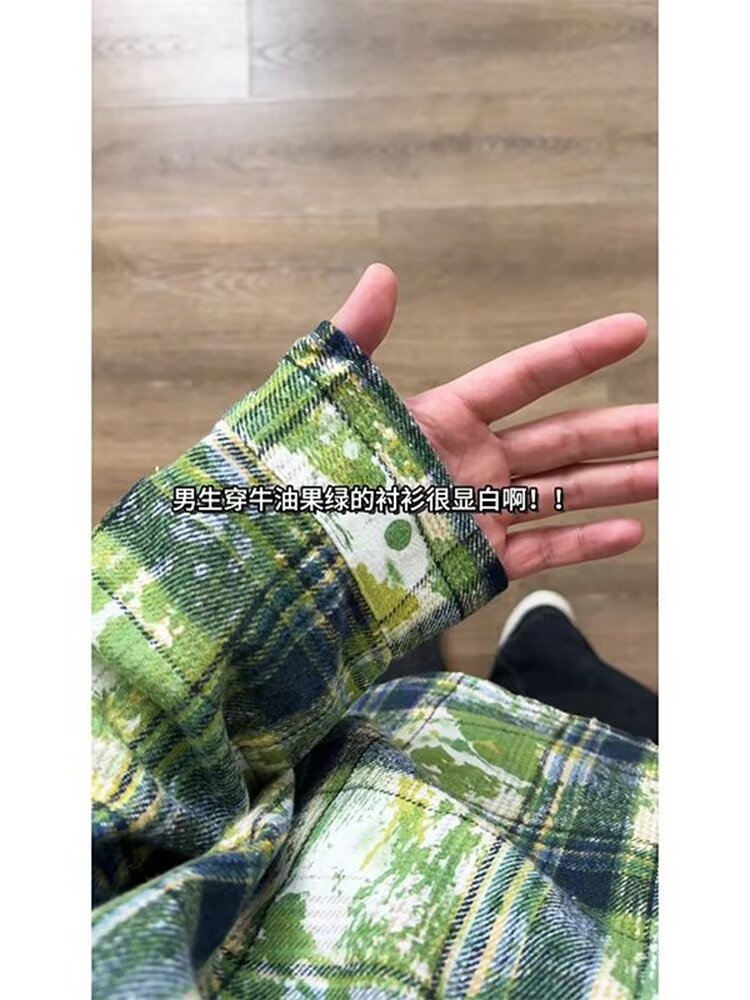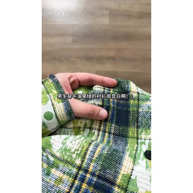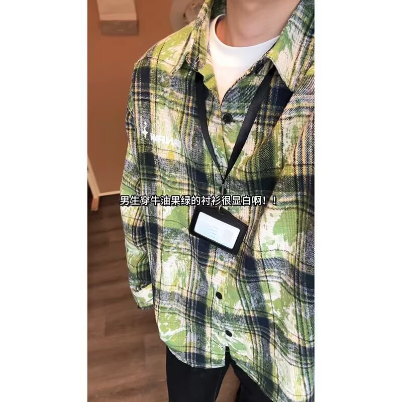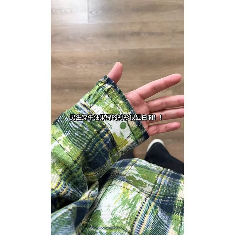 타이 염색 녹색 격자 무늬 셔츠 남성용 긴팔 봄, 가을 클린핏 셔츠 디자인 하이 엔드 아메리칸 재킷스토어 가기