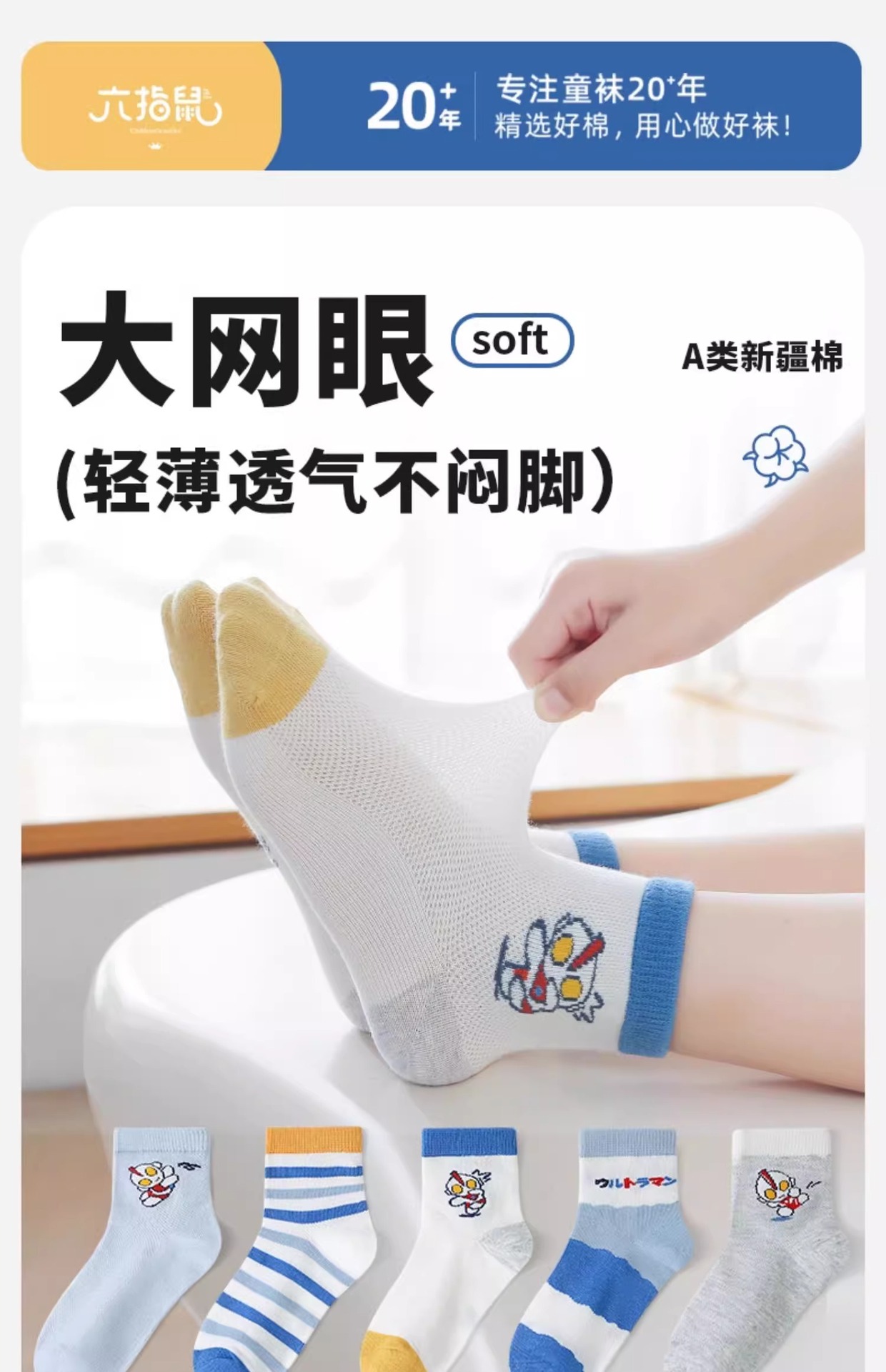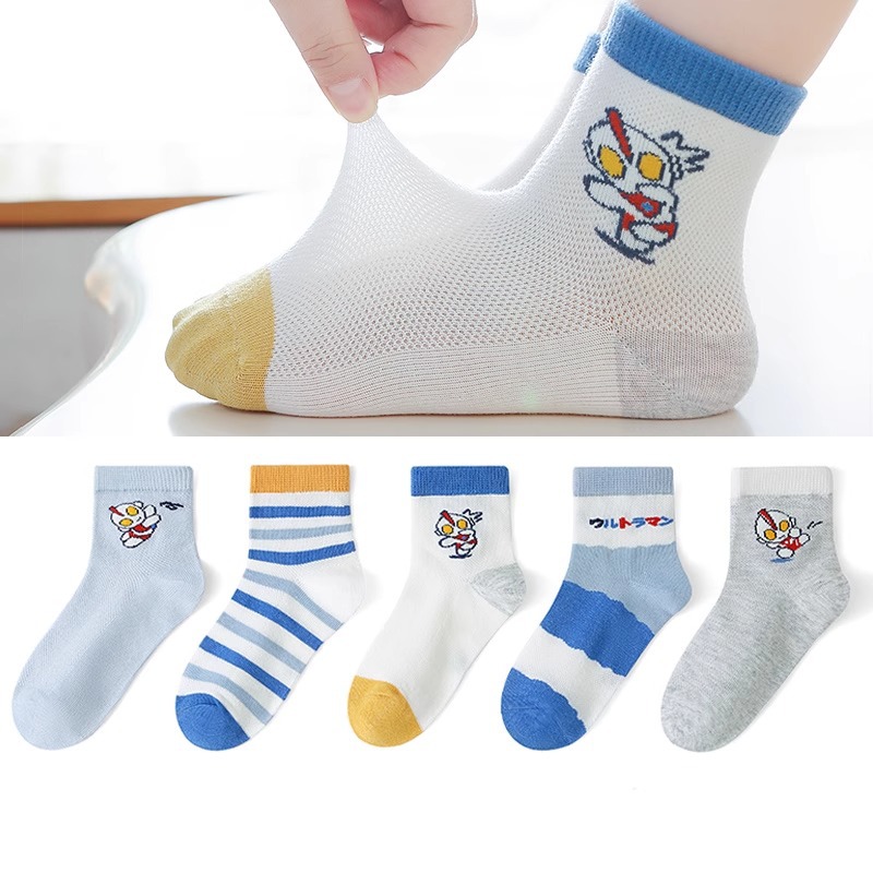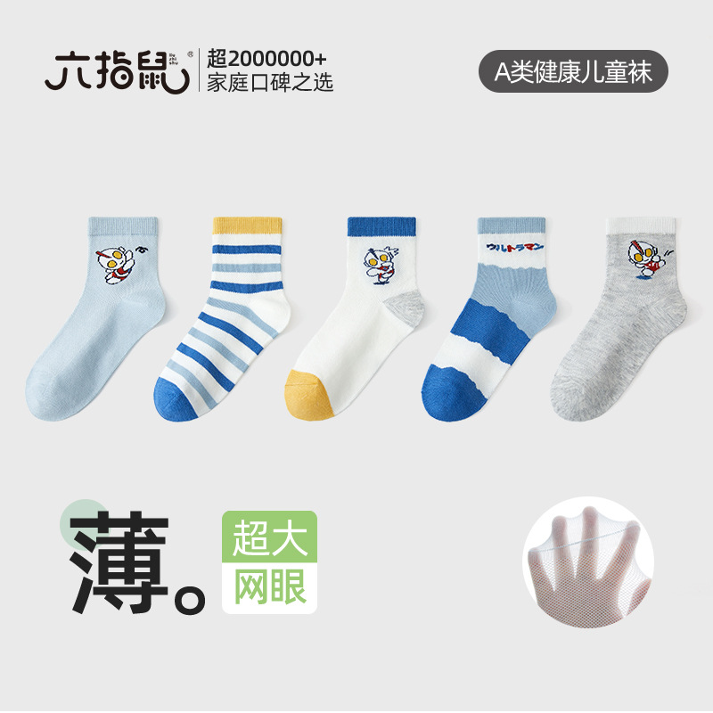 6 손가락 마우스 어린이 양말 소년 여름 메시 어린이 울트라 맨 봄과 가을 봄과 여름 얇은 중형 및 대형 어린이 미드 튜브 양말스토어 가기