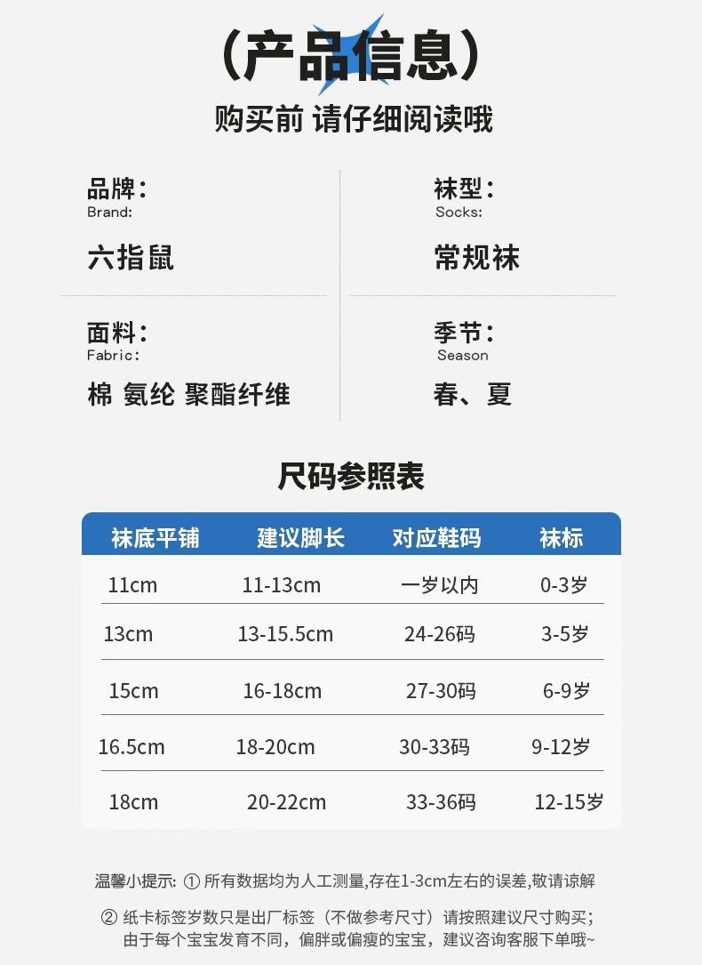• 양말 마크 0-3, 참고 신발 사이즈 18-22