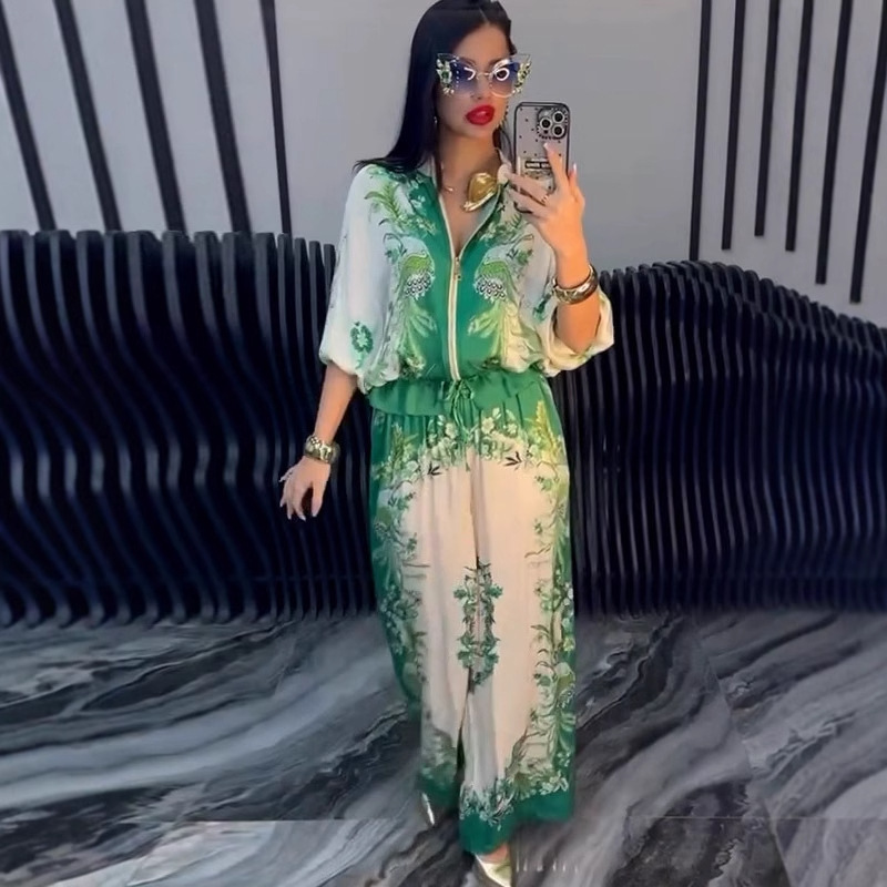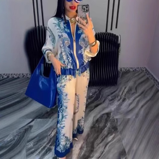 2025 여름 새로운 유럽과 미국의 아마존 패션 3 차원 인쇄 꽃 야구 세트 끈 바지 투피스 세트스토어 가기